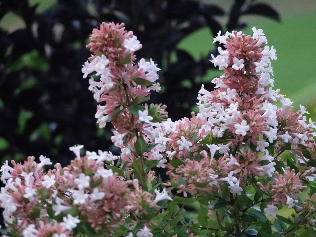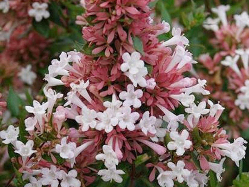 Abelia chinensis AUTUMN FESTIVAL 'Minabaut01' - stark verzweigter Kultivar, dichter als die Grundart. Er erreicht eine Höhe und Breite von etwa 1,5 m. Die Blätter sind kleiner, spitz zulaufend und von sattgrüner Farbe. Sehr dekorativ sind die kelchförmigen Blüten. Sie entwickeln sich aus rosa Knospen, nach dem Aufblühen sind sie weiß mit einem rosa Kelch. Sie erscheinen am Strauch im Spätsommer und halten bis in den Herbst. Wir empfehlen, diesen Kultivar als Kübelpflanze oder an geschützten Standorten zu kultivieren.