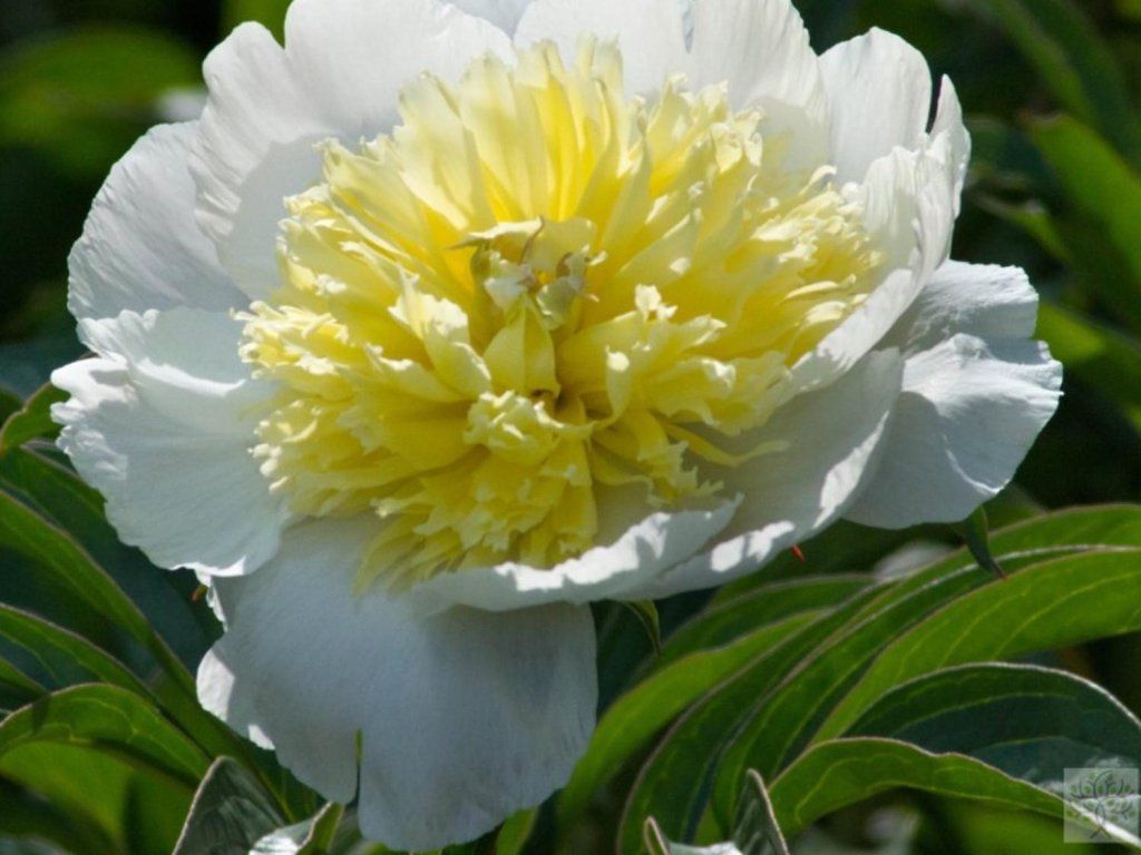 Chinesische Pfingstrose 'Honey Gold'- attraktive Staude ursprünglich aus Ostasien, wo sie auf Wiesen, felsigen Hängen und an Waldrändern in Regionen mit kalten Wintern wächst. Die Sorte 'Honey Gold' wurde von Carl G. Klehm in Illinois, USA, und wurde 1970 registriert. In der Abstammung wird die Kreuzung 'Mons. Jules Elie' als Mutterpflanze und Pollenlinie 71D angegeben. Sie bildet einen aufrechten Horst mit dunkelgrünen, tief geteilten Blättern, normalerweise 80–90 cm hoch und 50–60 cm breit, mit festen Stielen, die Haupt- und Seitenknospen tragen. Im Mai bis Juni öffnen sich Blüten von etwa 16–18 cm, am Rand cremeweiß und in der Mitte mit einem dichten Büschel goldgelber Petaloide. Die Mitte kann bei Reife eine bombige Form annehmen und zwischen den gelben Petaloiden erscheinen auch weitere cremefarbene Blütenblätter. Der Duft ist süß, am intensivsten bei warmem Wetter. Die offenere Mitte ist für Bienen und Hummeln zugänglich und gleichzeitig eine geschätzte Schnittblume. Im Beet harmoniert sie mit Schwertlilien, Salbei, Katzenminze, Storchschnabel, Ziergräsern und hellblühenden Rosen. Die Pflanze ist nicht essbar und kann bei Verzehr den Magen reizen, bei empfindlichen Personen kann der Saft die Haut reizen.