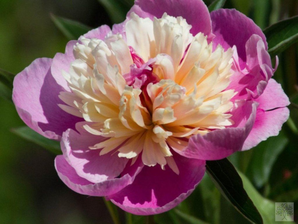 Chinesische Pfingstrose 'Sorbet'- eine unglaublich schöne Pfingstrose, die vor allem durch ihre großen, gefüllten Blüten besticht. Der Kultivar 'Sorbet' wird in europäischen Baumschulen als eine Auswahl des niederländischen Staudengärtners Luc Klinkhamer aus Südkorea im Jahr 1987 vorgestellt. Er bildet einen aufrechten Horst mit stabilen Stielen und geteilten, dunkelgrünen Blättern, die im Frühjahr oft einen weinrot-bronzenen Hauch aufweisen. Von Ende Mai bis Juni öffnen sich große, gefüllte Blüten von etwa 15–18 cm, in denen sich Schichten von hellrosa und weißen Blütenblättern mit einem cremefarbenen, zart gekräuselten Zentrum abwechseln. Der Duft ist ausgeprägt blumig und hält in der Vase mehrere Tage, weshalb der Kultivar auch für Gestecke verwendet wird. Die Farbzeichnung lässt sich gut mit weißen Schwertlilien, Salbei und Rosen kombinieren, zierliche Gräser unterstreichen die feine Struktur. Wie bei anderen Pfingstrosen kann der Verzehr für Haustiere reizend sein, daher ist es ratsam, sie außerhalb ihres üblichen Aufenthaltsortes zu platzieren. Die Chinesische Pfingstrose (Paeonia lactiflora) stammt aus Ostasien, insbesondere aus Nordchina, der Mongolei und dem südöstlichen Sibirien, wo sie auf grasbewachsenen Hängen und in lichten Gebüschen wächst.