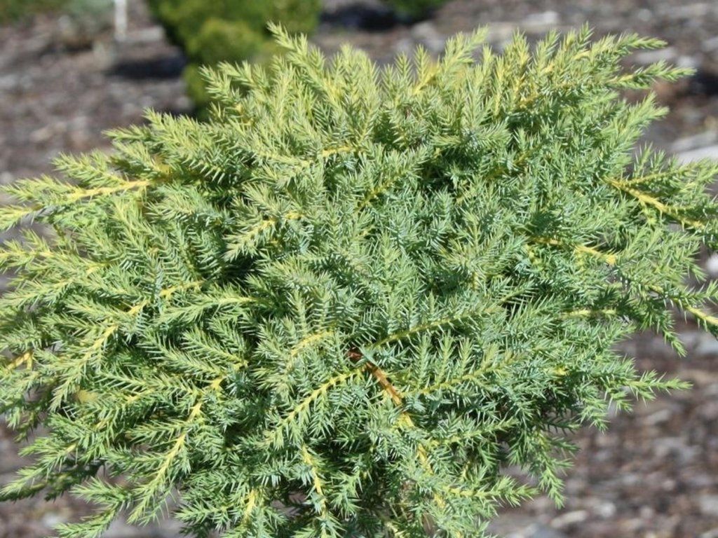 Chinesischer Wacholder 'Franz WB' - langsam wachsender Wacholder mit kissenförmiger Wuchsform. Er erreicht eine Höhe von ca. 30 cm und eine Breite von 60 cm, diese Höhe erreicht er etwa 10 Jahre nach der Pflanzung. Er bildet kleine, charmante Büsche. Im Frühling und Sommer sind die Triebspitzen goldgrün gefärbt, diese Färbung wird in den Herbstmonaten dunkler. Am häufigsten wird er für Steingärten verwendet und auch zur Befestigung von Hängen genutzt.