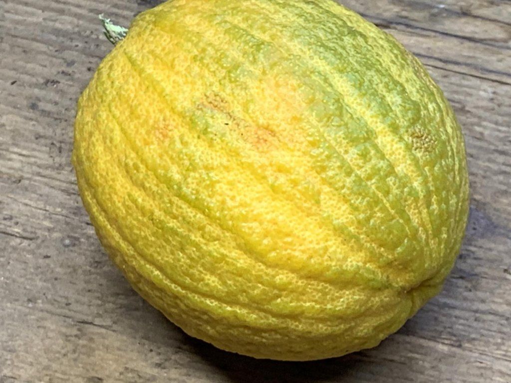 Citrus 'Cotidiana' - eine Zierform des Zitronenbaums, die ein Stück Exotik in Ihren Garten bringt. Der Baum wächst langsam, eher in die Breite. Er zeichnet sich durch dekorative panaschierte Blätter aus, die goldgelb bis grau geädert sind. Der Ursprung dieser Sorte liegt auf Kuba. Dekorativ sind auch die Früchte, die gestreift sind, besonders wenn sie unreif sind. In voller Reife haben sie eine tiefgelbe Farbe und eine grüne, unregelmäßige Streifung über den gesamten Umfang. Die Früchte sind eiförmig bis kugelförmig und reifen spät. Sein Geschmack ist süß bis leicht säuerlich, aber aromatisch und enthält eine kleine Menge Samen. Sie können sowohl als Außen- als auch als Zimmerpflanze angebaut werden. Sie vertragen auch rauhere Bedingungen.