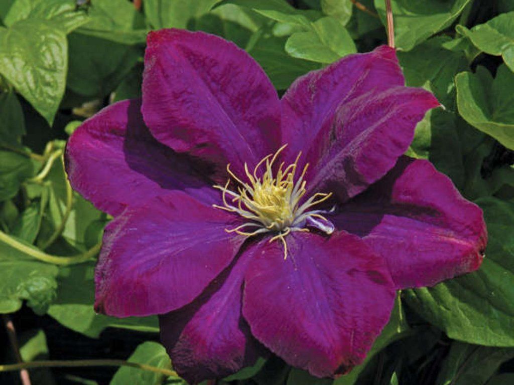Clematis 'Monte Cassino' - eine sehr attraktive Sorte von Clematis aus Polen, die Sie vor allem mit ihren satt gefärbten Blüten beeindrucken wird. Große Blüten kontrastieren schön mit sichtbaren und cremefarbenen Staubblättern. Die Blüten leuchten auf den ersten Blick, sie haben eine wunderschöne, dunkelviolette Farbe mit einem Hauch von Karminrot. Sie erscheinen von Juni bis August. Die Clematis erreicht standardmäßig eine Höhe von etwa 2 - 3 m. Nach der Blüte bilden sich flaumige Samenstände, die die Pflanze ebenfalls schmücken. Die Blätter sind größer, eiförmig und haben eine grüne Farbe. Gehört zur 3. Gruppe der Clematis, die ihren Schnitt bestimmt. Clematis sollten auf verschiedenen Arten von Stützen angebaut werden, z. B. an Pavillons, Gittern, Stöcken, Pergolen oder anderen Stützen. Die Clematis ist eine anspruchslose Pflanze und hat sich dadurch zu einer der gefragtesten Kletterpflanzen auf dem tschechischen und ausländischen Markt entwickelt. Die Clematis ist eine schöne, anspruchslose und widerstandsfähige blühende Pflanze, die ein romantisches und einzigartiges Aussehen in Ihrem Garten zaubert.
