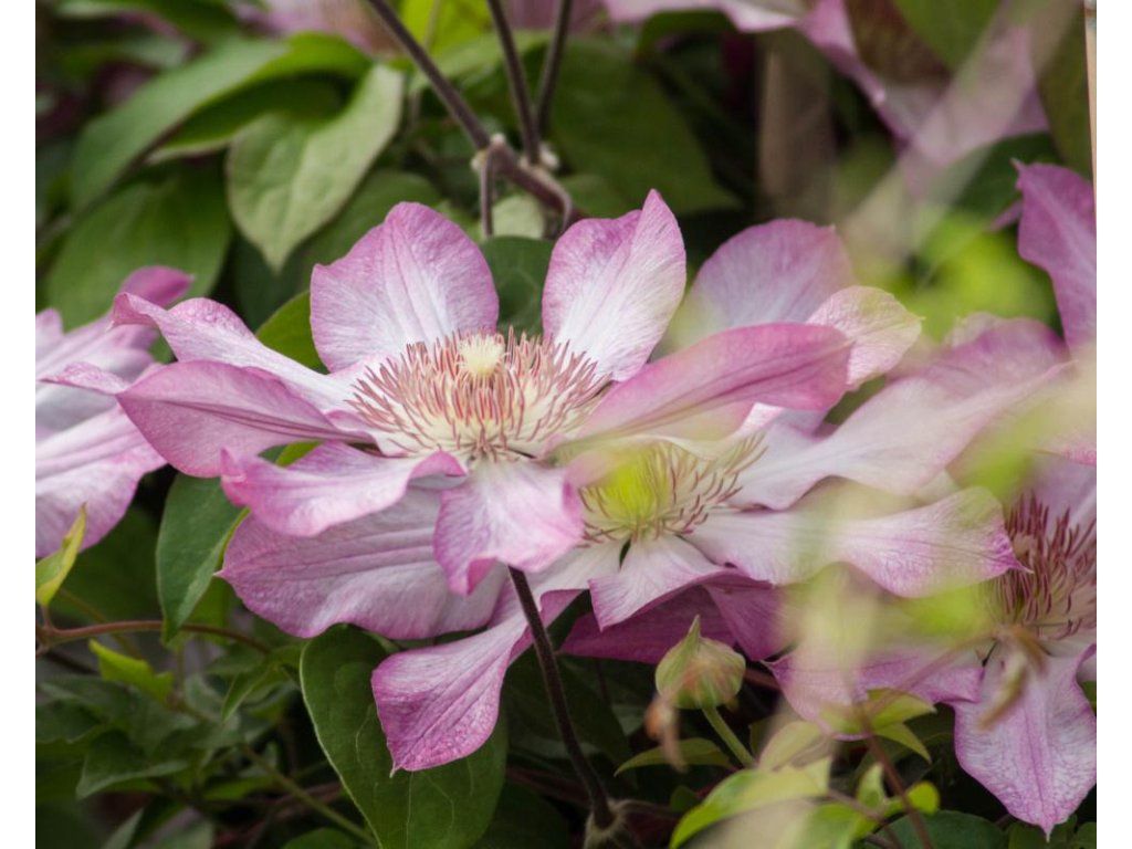 2. Gruppe - besteht aus einer Gruppe von Clematis, die im Frühsommer blühen. Die Blüten bilden sich im Mai und Juni an den letztjährigen Trieben; danach erscheinen sie in geringerem Maße im August und September. Der Schnitt sollte sanft sein, etwa 1,5 m über dem Boden, und bei günstigem Wetter zwischen November und März durchgeführt werden. Vor dem Austrieb werden nur schwache und abgestorbene Triebe entfernt.
