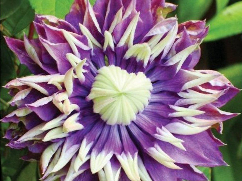 Clematis 'Taiga' - eine wunderschöne Clematis. Einzigartige und auffällige Blüten sind gefüllt, violett gefärbt mit einer ausgeprägt hellen Spitze. Wirkt sehr dekorativ und exotisch. Die Sorte erreicht eine Höhe von etwa 2 - 3 m. Sie blüht von Juli bis September. Sie wird Ihren Garten den ganzen Sommer über schmücken. Hell gefärbte Blätter unterstreichen nur die Einzigartigkeit der Blüten. Clematis sollten auf verschiedenen Arten von Stützen angebaut werden, z. B. an Pavillons, Gittern, Stöcken, Pergolen oder anderen Stützen. Gehört zur 3. Gruppe der Clematis, die ihren Schnitt bestimmt. Insgesamt ist die Clematis ein wunderschönes Element für Gärten, das Farbe und ein romantisches Aussehen in jeden Garten bringt. Sie ist pflegeleicht und somit eine geeignete Pflanze für Anfänger und erfahrene Gärtner. Wenn Sie also eine pflegeleichte und widerstandsfähige Pflanze suchen, die auf den ersten Blick besticht, dann ist die Clematis die richtige Wahl.