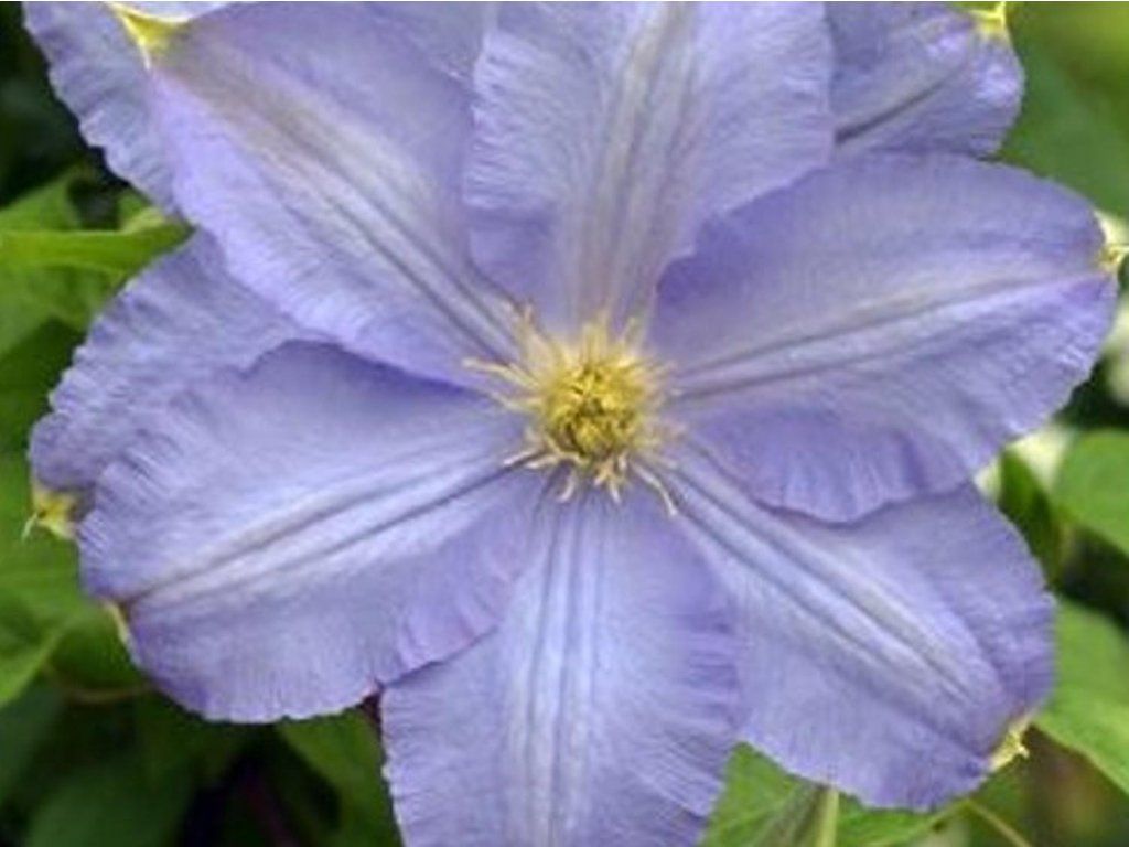 Clematis 'Vistula' - großblütige Garten-Clematis polnischer Herkunft. Der Autor der Sorte ist der bedeutende Züchter von Clematis Szczepan Marczyński, der sie als neuere Sorte mit Betonung auf langes Blühen und gesundes Wachstum auf den Markt brachte. Sie bildet eine laubabwerfende Kletterpflanze mit mäßig starkem bis starkem Wuchs, die unter unseren Bedingungen normalerweise eine Höhe von 2,5–3 m und eine Breite von etwa 1–1,2 m erreicht. Die Triebe sind dünner, wickeln sich gut um die Stütze mittels der Blattstiele. Die Blätter sind einfach oder dreiteilig, hell- bis mittelgrün, bilden während der Saison einen dichten Bewuchs. Die Blüten haben einen Durchmesser von etwa 15 cm und bestehen aus sechs elliptischen, spitz zulaufenden Kelchblättern mit leicht gewellten Rändern. Die Farbe ist zart lavendelfarben bis hellviolett, mit einer helleren Mitte und ausgeprägten gelben Staubbeuteln auf cremefarbenen Staubfäden, die der Blüte Kontrast verleihen. Die Blüte beginnt im Juni, erreicht oft im August ihren Höhepunkt und dauert bis in den September, wenn viele andere Clematis bereits verblüht sind. Die Pflanze bietet somit in der zweiten Sommerhälfte einen Farbeffekt. Sie eignet sich für Pergolen, Zäune, Spaliergerüste sowie in Kombination mit Rosen oder Solitärgehölzen, wo die Blüten einen sanften Farbübergang zu kräftiger blühenden Gehölzen schaffen. Wie andere Clematis ist sie beim Verzehr giftig und ihr Saft kann die Haut reizen. Gehört zur 3. Gruppe der Clematis, die ihren Schnitt bestimmt.