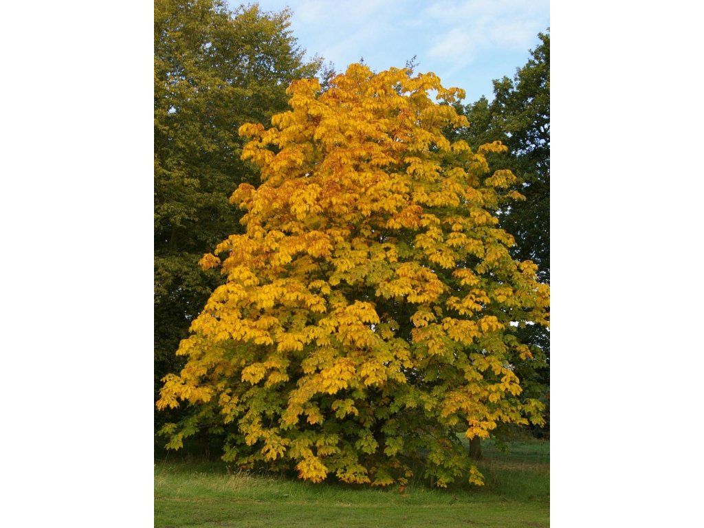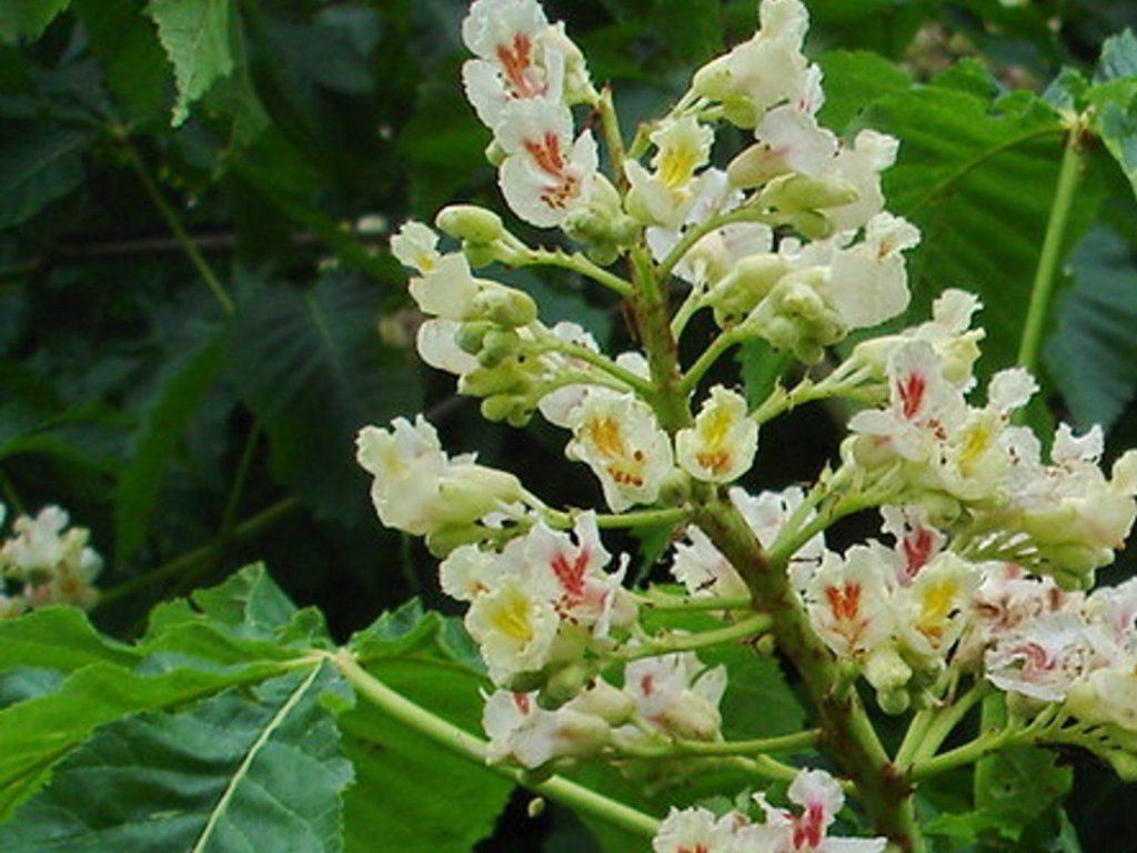 Dallimore-Rosskastanie - ein großer Laubbaum, von dem gesagt wird, dass er als Hybrid zwischen Kultivaren und Unterarten entstanden ist. Die Blätter ähneln denen anderer Rosskastanien, sind fünflappig und runzlig. Er erreicht eine Höhe von 10 m und hat ein starkes Wachstum. Seine Krone ist dicht und kugelförmig. Er blüht Mitte Mai, und zwar weiß mit roten Flecken. Die Art ist relativ resistent gegen die Rosskastanienminiermotte. Er ist tolerant gegenüber städtischen Bedingungen, einschließlich leicht verschmutzter Luft. Wenn Sie sich im Garten Schatten wünschen, wird Ihnen dieser Baum Schatten garantieren.