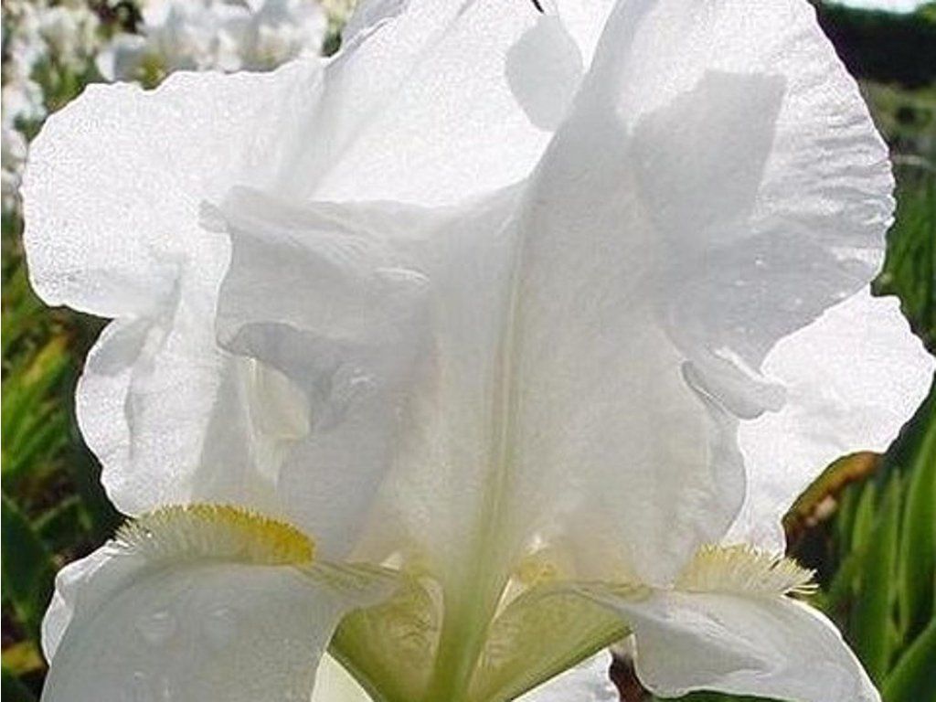 Schwertlilie 'Bianca' - sehr beliebt als Schnittblume. Sie erreicht eine Höhe von bis zu 100 und die Blüte ist reinweiß.