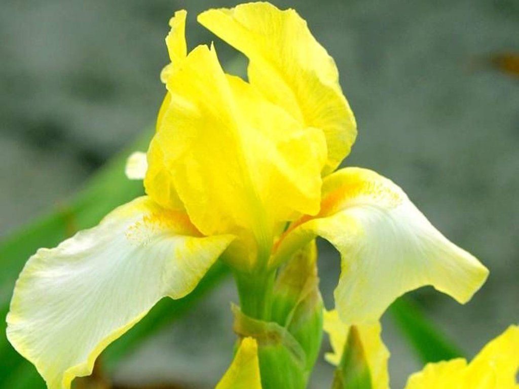 Iris germanica 'Blessed Again' - eine schöne und beeindruckende Sorte der Schwertlilie, die für ihre auffälligen Blüten beliebt ist. Die Blüten sind klassisch breit für deutsche Schwertlilien, mit geöffneten „unteren“ Blütenblättern und „hängenden“ oberen Blütenblättern. Eine Staude, die bis zu 100 cm hoch wird und gelb blüht. Eignet sich hervorragend für Beete und Steingärten. Er blüht von April bis Mai. Ein Juwel für jeden Garten. Sie kann zum Beispiel mit anderen Stauden wie Lavendel, Klivien oder Taglilien kombiniert werden. Wird an einem sonnigen Standort gepflanzt. Die Schwertlilie ist sehr attraktiv für Bestäuber, insbesondere für Bienen und Schmetterlinge.