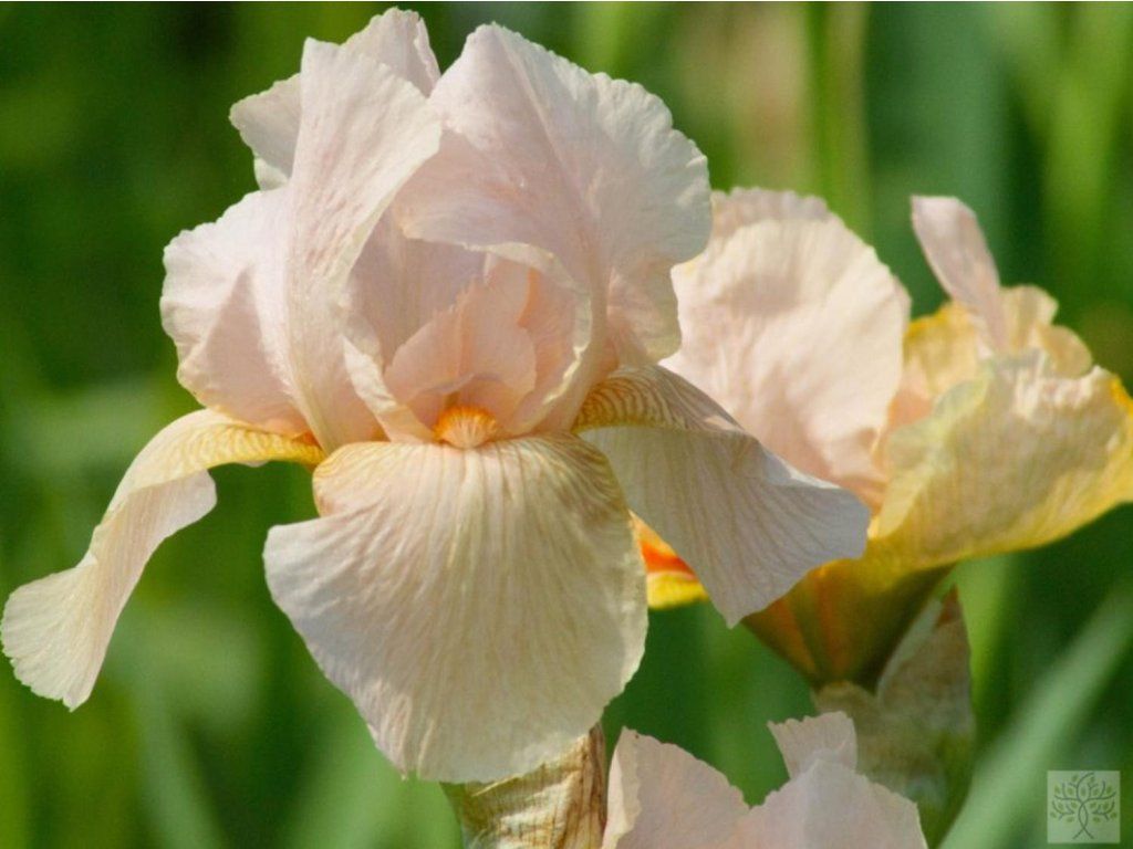 Iris germanica 'Constant Wattez' - eine Sorte von Bart-Schwertlilien für Gärten, botanisch Iris × germanica, deren Ursprung auf europäische Kreuzungen von Iris pallida und Iris variegata zurückgeht. Die Sorte wurde von P. gezüchtet. Van Veen gezüchtet, registriert im Jahr 1959 und gehört zu den mittelhohen Schwertlilien. Das ausdauernde Rhizom breitet sich flach unter der Oberfläche aus und bildet kompakte Horste. Fächer aus schwertförmigen, graugrünen Blättern bilden eine klare, grafische Struktur, und über ihnen erheben sich im Mai bis Juni Stängel von etwa 60–80 cm. Die Blüten sind groß und in zarten Pastelltönen gehalten. Die aufrechten Blütenblätter haben einen muschelrosa bis rosaweißen Ton, die herabhängenden Blütenblätter gehen in ein beige-grünliches bis strohfarbenes Aussehen über und die Mitte wird durch einen dunkelmandarinfarbenen Bart hervorgehoben. Die Blüten duften oft angenehm und sind für Bienen und Hummeln attraktiv. Die Pastellpalette kommt gut neben weißen Glockenblumen, Storchschnäbeln, Katzenminze und Lavendel zur Geltung, wo sie als sanftes Licht im Beet wirkt. Die Pflanzenteile der Schwertlilien sind bei Verzehr reizend. Die Blüte ist mittelfrüh.