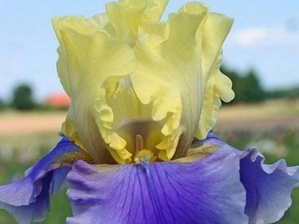 Schwertlilie 'Edith Wolford' - reichblühende, mittelfrühe bis späte Schwertlilien-Sorte, die bis zu 80-100 cm hoch wird. Große Blüten von bis zu 10 cm blühen von Mitte Mai bis Juni und zeichnen sich durch ihre pastellfarbenen Blütenblätter in Gelb- und Lavendelviolett aus. Die Blütenblattkanten sind leicht gewellt. Sie bildet Büschel von schwertförmigen, flachen Blättern, die graugrün mit einem Hauch von Blaugrün sind. Eignet sich hervorragend für gemischte Staudenbeete, aber auch für Gruppenpflanzungen mit anderen Kultivaren. Die Blüten eignen sich gut als Schnittblumen.