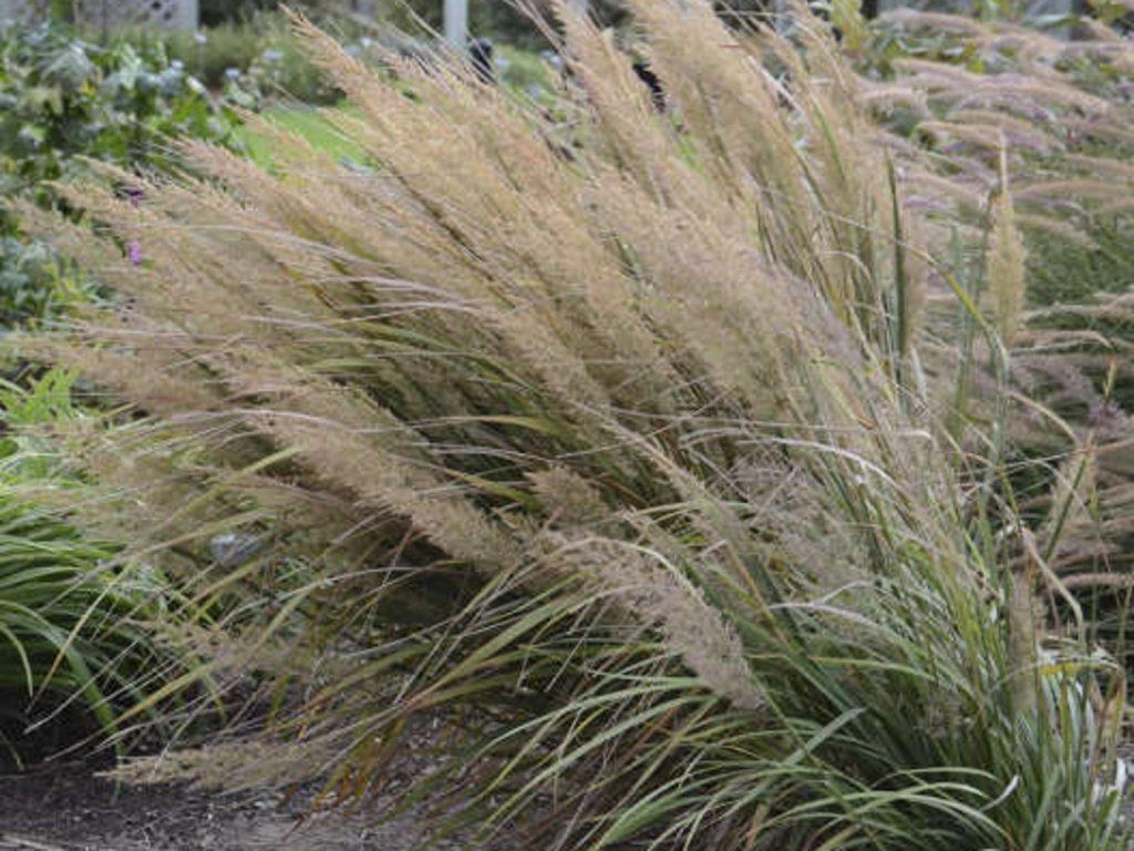 Calamagrostis brachytricha - eine ausdauernde Ziergrasart aus der Familie der Süßgräser, ursprünglich aus Ostasien, insbesondere aus Korea, Japan und angrenzenden Gebieten Chinas. In der Natur wächst sie an Waldrändern und auf feuchteren Bergwiesen. Im Garten bildet sie einen horstigen Wuchs ohne lange Ausläufer, sodass sie eine kompakte Form behält und auch für kleinere Pflanzungen geeignet ist. Im belaubten Zustand erreicht sie normalerweise eine Höhe von 50–80 cm, in Blüte etwa 90–130 cm und eine Breite von 60–80 cm. Die Blätter sind schmal, frischgrün, leicht überhängend und bilden eine dichtere, fontänenartige Form, die gemischte Beete vereinheitlicht. Von August bis Oktober erheben sich über den Blättern luftige Rispen von etwa 15–25 cm Länge. Anfangs sind sie silbrig mit einem zartrosa Schimmer, im Herbst gehen sie in Beige-Töne über und bleiben oft auch über den Winter dekorativ. Die Halme eignen sich für den Schnitt und für Trockenarrangements. In Kompositionen passt sie gut zu Sonnenhut, Fetthenne, Astern und anderen Stauden des Spätsommers, sie mildert auch Pflanzungen an Sträuchern und in naturnahen Staudenbeeten ab. Im Vergleich zu Calamagrostis acutiflora wirkt sie weicher und verträgt auch Halbschatten, ihre Blütenstände sind feiner „behaart“.