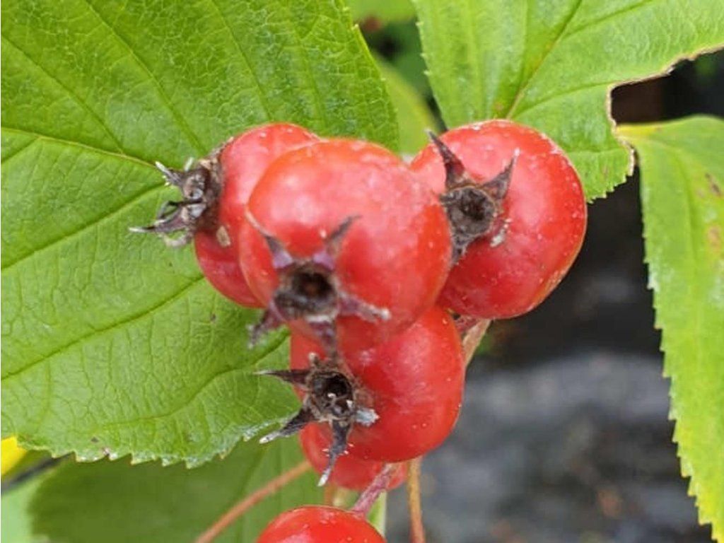 Dorniger Weißdorn 'Langer Dorn' - NEU! Kultivar mit Dornen, die bis zu 15 cm lang sind, sehen auf der Pflanze sehr dekorativ aus. Die Jungpflanze ist auf einem Stamm. Wächst bis zu einer Höhe von 12 m. Die Blätter sind 5 - 7 cm lang, der Blattstiel ist 2 cm lang. Sie sind oval, am Rand gezähnt. Die Blüten sind weiß, später leicht rosa. Die Früchte sind rot, reif im Oktober.