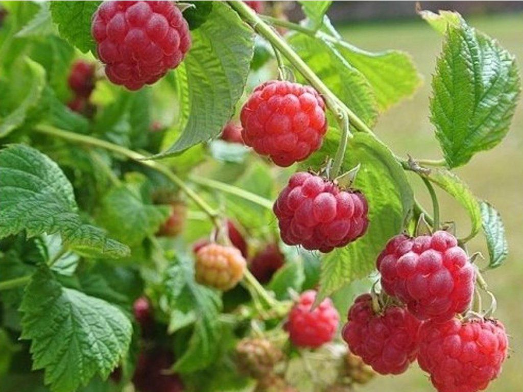 Himbeere 'Ruby Beauty' - moderne Zwerghimbeersorte, speziell gezüchtet für den Anbau in Töpfen, kleineren Gärten und urbanen Umgebungen. Dies ist eine sogenannte kompakte dornenlose Himbeere, ideal für Balkone, Terrassen und Hochbeete.