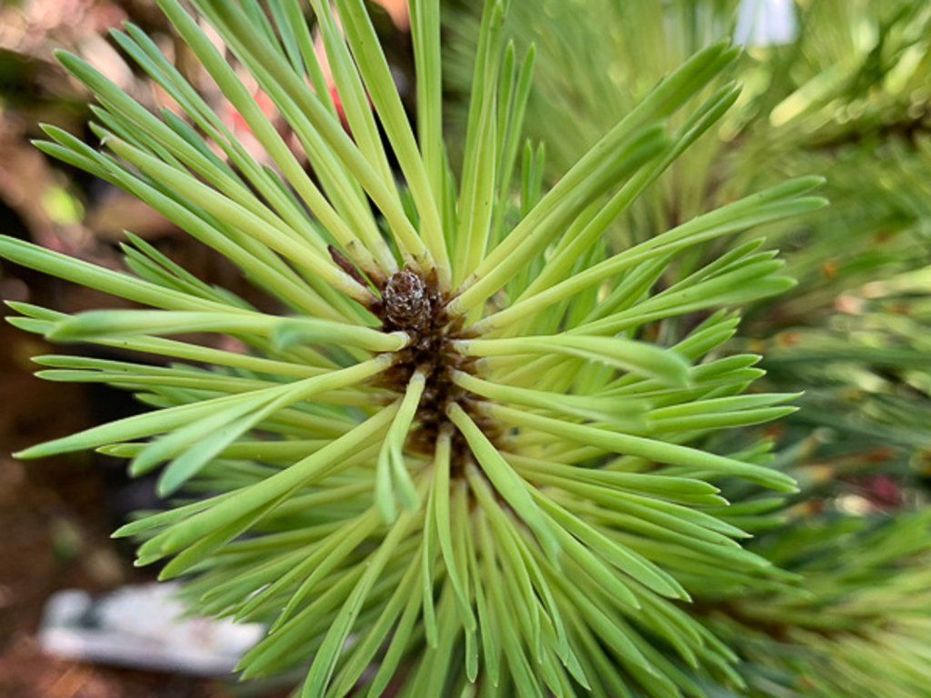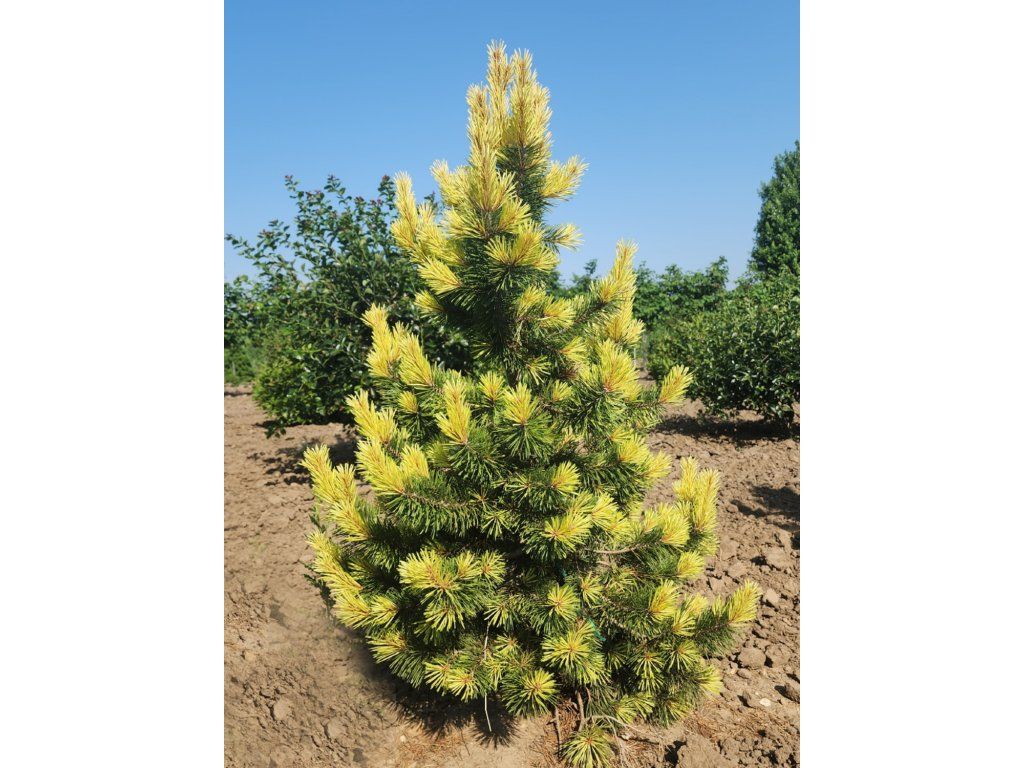 Gedrehte Kiefer 'Taylor's Sunburst' – ein immergrünes Kultivar der Bergkiefer, selektiert in den Bergregionen Colorados. Die Auswahl wird mit Allan Taylor in Verbindung gebracht, der die Pflanze in den 1980er Jahren in den Rocky Mountains entdeckte. Der Habitus ist aufrecht und schmal, mit offeneren Ästen, sodass er auch dort gut zur Geltung kommt, wo ein vertikaler Akzent ohne große Breite benötigt wird. Mit 10 Jahren erreicht sie eine Höhe von ca. 2 m. Die jährlichen Zuwächse betragen 15 - 20 cm, je nach Kulturbedingungen. Dunkelgrüne Nadeln bilden eine stabile Kulisse für die Frühlingspracht, die austreibenden Triebe färben sich in tiefgelben bis buttergelben Tönen und gehen allmählich in ein Hellgrün über. Die Färbung hält 3 - 4 Monate an und lässt die gesamte Pflanze buchstäblich erstrahlen. Der Effekt wird durch kleine kirschrote männliche Zapfen und später auch kleine weibliche Zapfen verstärkt. Die Nadeltextur und der Farbkontrast wirken in Kombination mit Steinen, Kies und niedrigen Stauden, auch neben blau belaubten Nadelgehölzen, Wacholder und Gräsern machen sie eine gute Figur.