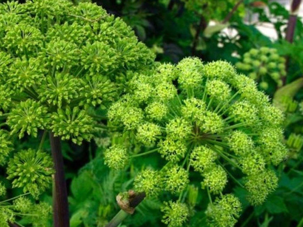 Engelwurz - zweijähriges bis mehrjähriges Kraut. Der Stängel erreicht normalerweise eine Höhe von bis zu 200 cm. Im ersten Jahr produziert die Pflanze Blätter und anschließend im zweiten Jahr Blüten. Im zweiten Jahr erscheinen auf dem hohlen, grünen oder violetten und starken Stängel hellgrüne halbkugelförmige Blütenstände mit kleinen Blüten. Sie blüht von Juni bis August. Der Duft ist aromatisch. Sie macht Freude als Solitärpflanze oder als Teil eines Staudenbeetes. Sie ist nicht anspruchsvoll im Anbau und verleiht jedem Garten ein einzigartiges Aussehen.