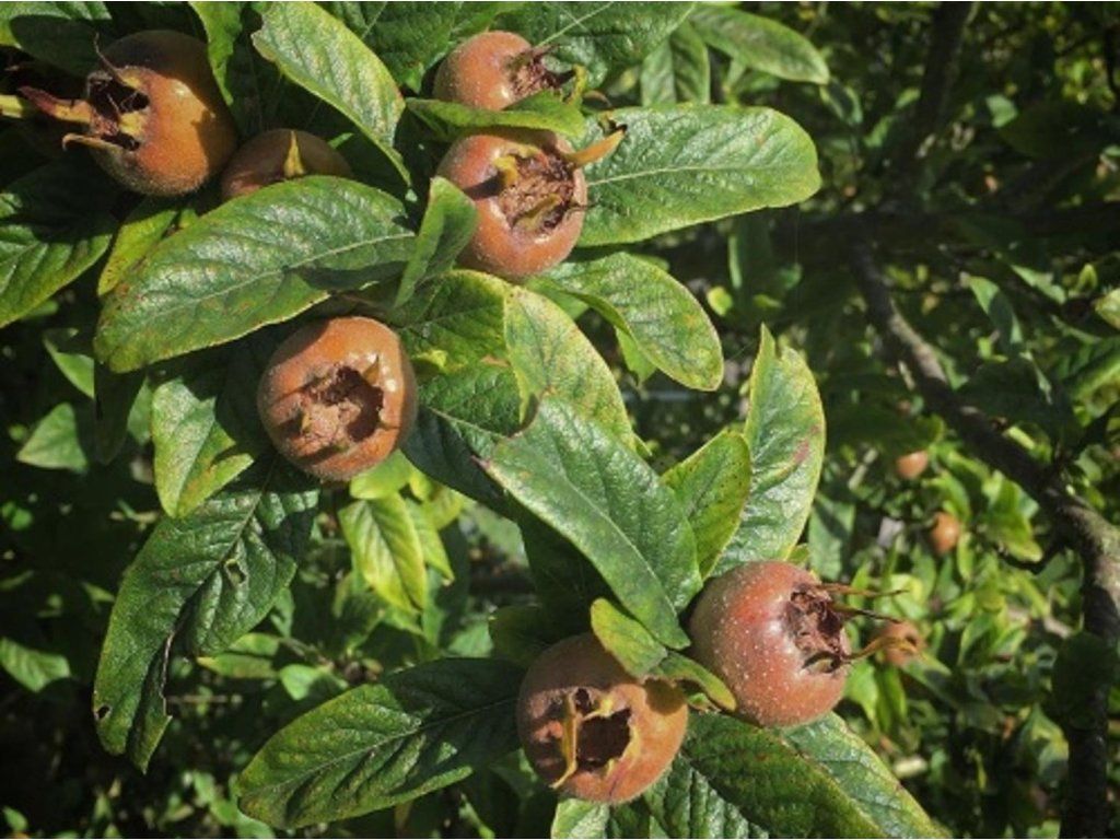 Deutsche Mispel 'Royal' - die schmackhafteste Mispelsorte mit sehr großen Früchten. Die Früchte sind gelb, das Fruchtfleisch ist pastös und hat einen ausgezeichneten Geschmack und Duft. Die Sorte ist resistent gegen Krankheiten. Die Früchte eignen sich für den direkten Verzehr, bei voller Reife schmecken sie ähnlich wie Feigen. Wir ernten die Früchte nach dem ersten Frost. Einer der schönsten kleinen Gartenbäume, der aus dem Orient stammt. Die Früchte enthalten eine Masse, die wie pikante Marmelade schmeckt. Wir empfehlen!