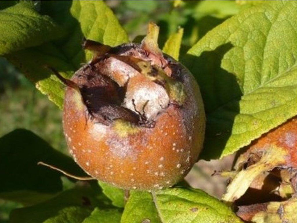 Deutsche Mispel 'Tardive' - anspruchsloser, laubabwerfender Strauch oder Baum. Geschätzt für seine interessanten, süßen Früchte, die jedoch erst nach den ersten Frösten am schmackhaftesten sind. Die Früchte können weiterverarbeitet werden. Die Sorte Tardive ist eine der neuesten. Ihre Früchte sind eher klein und können bereits ab November geerntet werden.