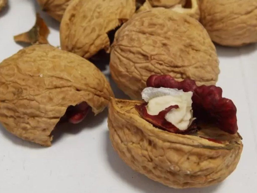 Walnussbaum 'Kardinal' - eine Sorte, die vor allem für die ausgeprägte rote Färbung der Früchte geschätzt wird, die sich sowohl an der Fruchthülle als auch am Kern zeigen kann. Der Baum ist sommergrün, windbestäubt, mit kräftigerem Wachstum und einer regelmäßigen, gut verzweigten Krone. In ausgewachsenem Zustand erreicht er normalerweise eine Höhe von 12–18 m und eine Breite von 8–12 m, wodurch er sich als Solitärpflanze oder in einem kleineren Obstgarten auszeichnet. Die Blätter sind groß, unpaarig gefiedert und im Sommer tiefgrün. Die Blütezeit ist im Mai, die männlichen Kätzchen setzen Pollen frei und die weiblichen Blüten erscheinen an den Enden der jungen Triebe. Das Austreiben ist mittel bis spät, was unter tschechischen Bedingungen oft das Risiko von Schäden durch späte Frühlingsfröste verringert. Die Früchte sind mittelgroß und lassen sich nach Erfahrung der Züchter gut schälen, wodurch die Kerne in der Konditorei, in hausgemachten Mischungen und in der Küche verwendet werden können. Die Kerne enthalten natürlich Öle, die reich an ungesättigten Fettsäuren und Vitamin E sind, der Geschmack ist mild nussig und nicht adstringierend. Die rote Färbung ist mit Anthocyanen verbunden, die dem Kern und der Schale einen dekorativen Ton verleihen. Da die Überlappung der Blütezeit von männlichen und weiblichen Blüten bei Walnussbäumen variieren kann, verbessert die Anwesenheit einer anderen Walnusssorte in der Umgebung oft die Bestäubung und Fruchtbildung.