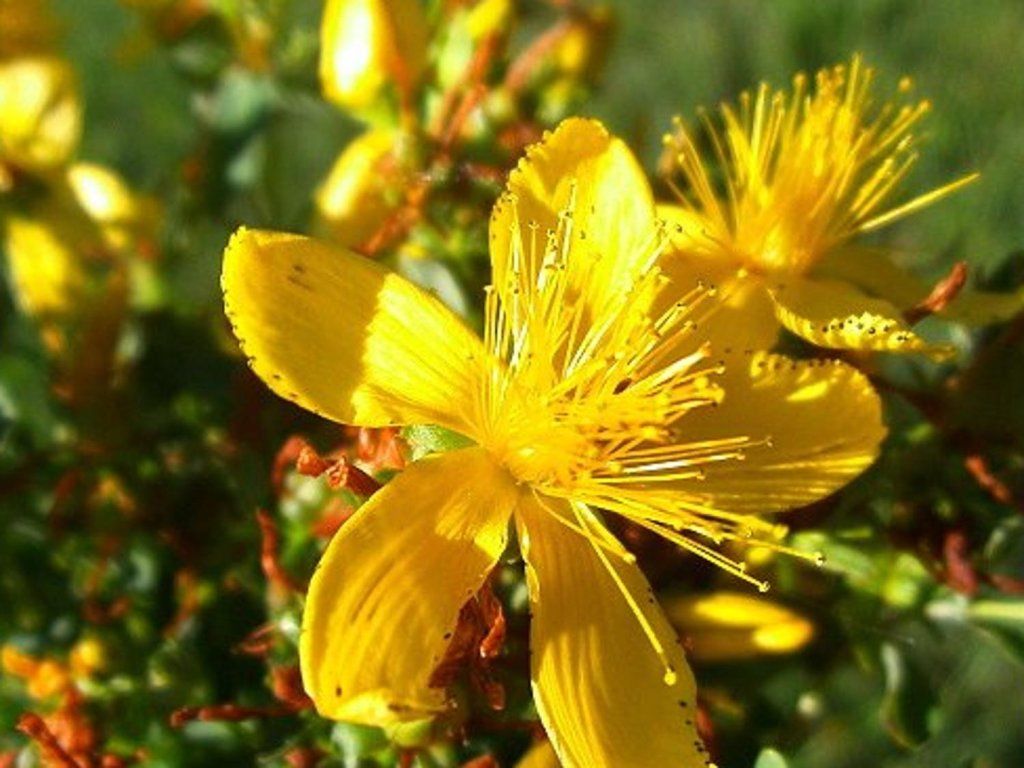 Echtes Johanniskraut - eine ausdauernde, 10-60 cm hohe Pflanze, mit gegenständlichen, einfachen Blättern und goldgelben, regelmäßigen Blüten in reichen Blütenständen. Die Anwendung von Johanniskraut ist sehr umfangreich, es wirkt antibiotisch, reinigt das Blut, hat entzündungshemmende Wirkungen, wirkt gut bei Ekzemen, beseitigt Schwellungen. Stärkt das Immunsystem, hat günstige Wirkungen auf das Atemwegs- und Herz-Kreislauf-System, unterstützt die normale Verdauung, beeinflusst einen festen und tiefen Schlaf, vertreibt Stress und Depressionen, dämpft Nervosität, Angst und Gefühle der Vergeblichkeit.