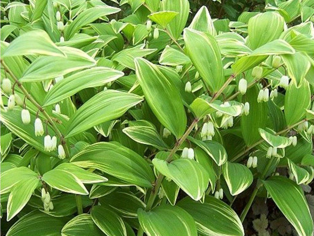 Duft-Salomonssiegel 'Variegatum' - stammt aus Europa. Erreicht eine Höhe von 80 cm. Der Stängel hat einen viereckigen Querschnitt. Die Blätter sind zweireihig angeordnet und wachsen wechselständig. Sie blüht mit weißen, schmalen, glockenförmigen Blüten, die in Trauben angeordnet sind. Die Pflanze ist giftig. Sie bevorzugt helle Hänge in Misch- oder Kiefernwäldern mit lockerem oder sandigem Boden. Geeignet für Staudenbeete.