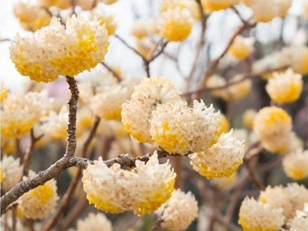 Pflege: Edgeworthia benötigt ein geschütztes Mikroklima, am besten windgeschützt an einer Mauer oder zwischen höheren Gehölzen, wo sie starkem Winterwind und starker Morgensonne nach Frost nicht ausgesetzt ist. Sie gedeiht am besten an einem sonnigen bis halbschattigen Standort; im lichten Schatten höherer Bäume leidet die Blüte nicht, solange sie genügend Licht erhält. Der Boden sollte tiefgründig, humos, gut durchlässig, stets leicht feucht und mit einem leicht sauren bis neutralen pH-Wert von etwa 5,5–7 sein. Es ist ratsam, Kompost oder Laubhumus beizumischen und für eine gute Drainage zu sorgen, da Edgeworthia keine Staunässe, besonders im Winter, verträgt. Die Bewässerung in der Saison sollte den Boden feucht halten, in heißen Sommern ist eine Mulchschicht aus Rinde oder Laub vorteilhaft, da sie die Verdunstung reduziert und die flachen Wurzeln schützt. Gedüngt wird eher mit leichten Kompostgaben oder Düngern für Ziersträucher, zu hohe Stickstoffgaben können ein üppiges, aber unreifes und frostempfindliches Wachstum fördern. Ein Rückschnitt ist meist minimal, es werden nur erfrorene und sich kreuzende Äste nach der Blüte entfernt. Die Frostbeständigkeit wird in europäischen Quellen mit etwa −12 °C angegeben, in wärmeren Regionen und geschützter Lage kurzzeitig auch bis −15 °C, daher wird in unseren Wintern empfohlen, die Wurzelzone mit einer stärkeren Mulchschicht zu schützen und die Krone junger Pflanzen mit einem atmungsaktiven Textil zu umhüllen. Der ideale Pflanzzeitpunkt ist Frühling oder Herbst, bei Containerpflanzen von März bis Oktober. Dank zarterer Gewebe und früher Blüte können junge Pflanzen empfindlicher auf späte Fröste reagieren, daher hilft eine Pflanzung an einem Ort, an dem sich kalte Luft weniger sammelt. An einem gut gewählten Standort und mit leichtem Winterschutz wird die Edgeworthia zu einer zuverlässigen Quelle für Duft und Farbe im Vorfrühling.