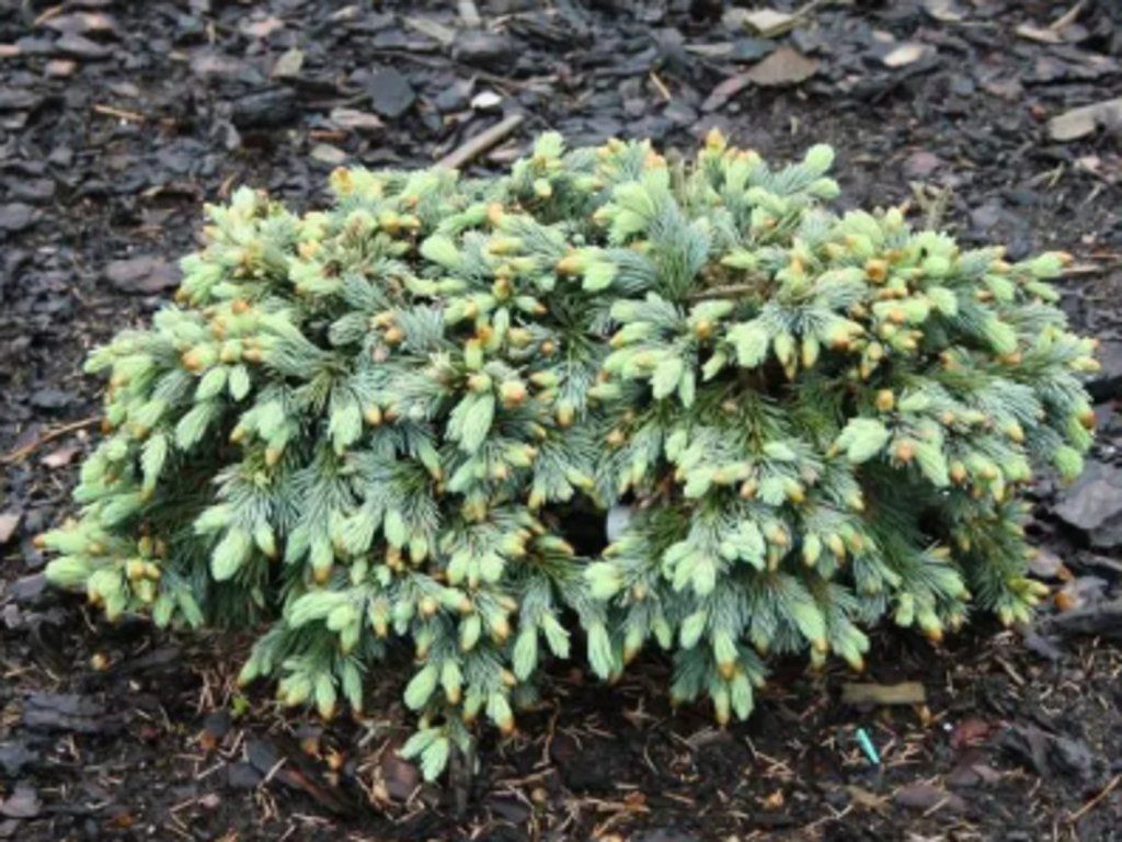 Engelmann-Fichte 'Cineiga' - eine schöne und interessante Fichtensorte, die durch ihr schön gefärbtes Nadelwerk besticht. Im ausgewachsenen Zustand erreicht der Kultivar standardmäßig eine Höhe von etwa 20 - 30 cm und eine Breite von etwa 30 - 40 cm, je nach Kultivierungsbedingungen. Die Nadeln sind blau und grün gefärbt mit feinen Silbertönen. Junge Triebe färben sich in einem frischen Grün. Sie verträgt Rückschnitt sehr gut, wodurch Sie den Strauch in der gewünschten Form halten können, obwohl die Sorte 'Cineiga' ein kompaktes Wachstum aufweist. Es ist daher nicht notwendig, sie durch Schnitt zu pflegen. Sie ist sehr widerstandsfähig, frosthart und anspruchslos im Anbau, weshalb sie sowohl von absoluten Anfängern als auch von erfahrenen Gärtnern geliebt wird. Es handelt sich um eine Zwergform, die sich hervorragend in einem Staudenbeet, in Steingärten oder in einem Topf als Zierpflanze eignet.