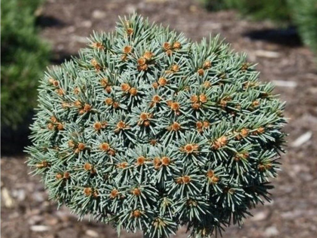 Engelmann-Fichte 'Jasper Lake' - sehr langsam wachsende Sorte. Der Habitus ist kompakt und kugelförmig. Im Laufe von zehn Jahren erreicht sie eine Höhe von nur 0,2 m und eine Breite von 0,3 m. Die jährlichen Zuwächse liegen bei etwa 2 cm. Kürzere Nadeln haben einen intensiven blau-silbernen Farbton. Sie zeichnet sich durch gute Frostbeständigkeit aus. Diese Sorte eignet sich auch für die Kultivierung in Behältern, sie sieht auf einem Stamm veredelt sehr schön aus.