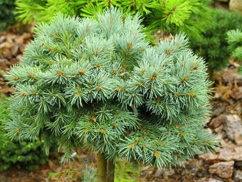 Engelmann-Fichte 'Lobo' - eine einzigartige Fichtensorte mit kompaktem und kugelförmigem Wuchs. Im ausgewachsenen Zustand erreicht der Kultivar eine Höhe und Breite von etwa 40 cm. Das Wachstum ist sehr langsam, die Endhöhe erreicht der Kultivar etwa nach 10 Jahren. Die Nadeln sind zahlreich über die gesamte Länge der Zweige angeordnet, von tiefgrüner Farbe mit einem zarten blauen Schimmer. Die Nadeln sind bei Berührung fein und weich. Neue Triebe haben eine frischgrüne Farbe. Die Sorte kann durch Schnitt erhalten werden, ist aber nicht zwingend erforderlich. Dank ihres Wuchses ist sie auch für kleinere Gärten ideal. Sie eignet sich hervorragend für Staudenbeete, Steingärten oder als dekorative Pflanze im Topf. Dank ihrer Anspruchslosigkeit und Widerstandsfähigkeit gehört sie zu den am häufigsten gewählten Zwergkoniferen für tschechische und slowakische Gärten. Eine wirklich gelungene Sorte.