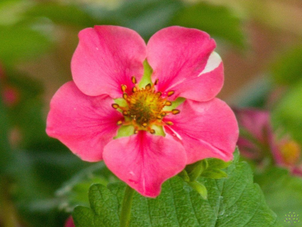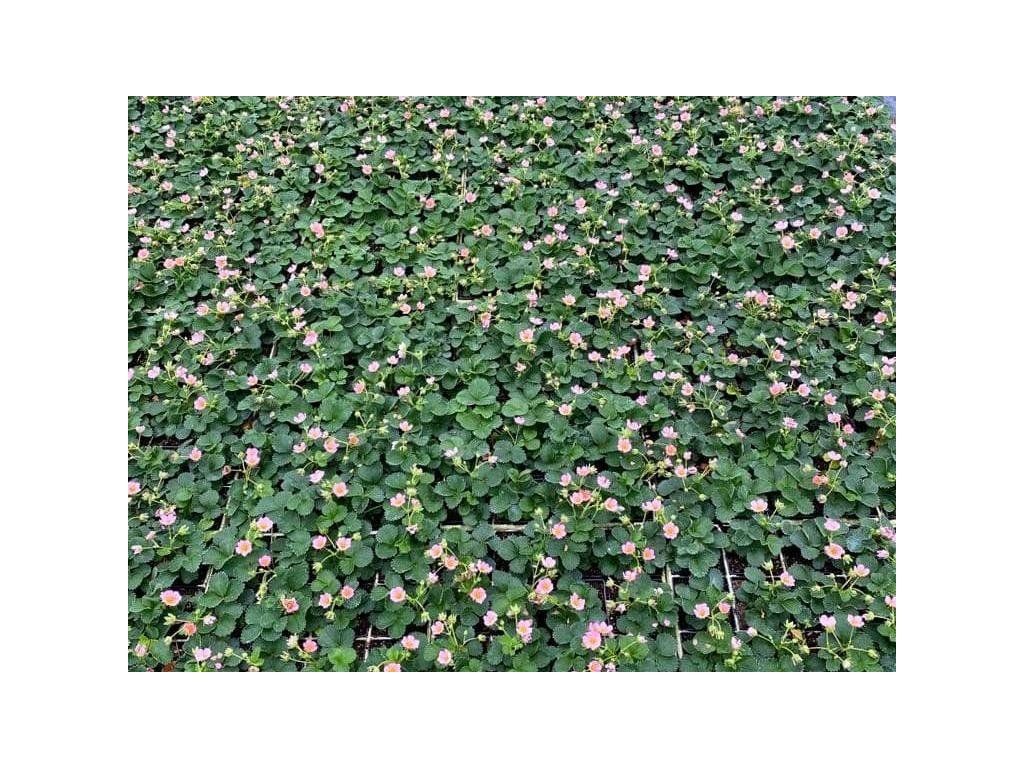 Erdbeere 'Strawberry Ice' PBR - eine neue Hybrid-Erdbeere, die klassische und rosablühende Erdbeeren kombiniert. Die Sorte 'Strawberry Ice' PBR gehört zu den immer tragenden Typen, die während des Sommers wiederholt blühen und Früchte ansetzen. Sie bildet dichte Rosetten aus dunkelgrünen, dreiteiligen Blättern und ein kompaktes, polsterartiges Gewächs von etwa 0,25–0,30 m Höhe und etwa 0,50 m Breite. Ab Anfang Mai erscheinen rosa Blüten mit einem Durchmesser von etwa 2 cm und einer ausgeprägten gelben Mitte, die sich bei guter Bestäubung durch Insekten allmählich in kegelförmige Früchte verwandeln. Die Früchte sind hell gefärbt bis cremeweiß, fest und saftig, mit süßem Geschmack und einem Aroma, das an Walderdbeeren erinnert. In der Küche werden sie frisch verwendet, für Desserts, Kuchen, Marmeladen und Eiscreme. Erdbeeren enthalten von Natur aus Vitamin C, Ballaststoffe und ein breites Spektrum an Polyphenolen, weshalb sie zu den beliebten „kleinen Früchten“ zählen. Die Sorte wird als Neuheit geführt, die seit 2024 kommerziell vertrieben wird und durch Züchtungsrechte PBR geschützt ist.