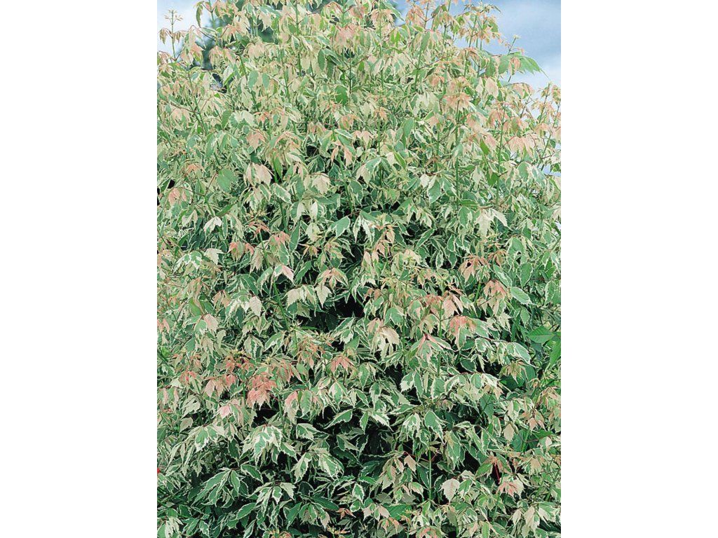 Bergahorn 'Flamingo' - schneller wachsender, sehr beliebter Kultivar, der eine Höhe von 5 - 7 m und eine Breite von 2 - 4 m erreicht. Bildet von Natur aus eine dichte und relativ regelmäßige Krone. Seine Beliebtheit verdankt er seinen dekorativen, panaschierten Blättern, die in der Knospenphase rosa sind, später grün werden und mit einem unregelmäßigen cremefarbenen Rand verziert sind. Anfang März bis April erscheinen unscheinbare gelb-grüne Blüten noch vor dem Austreiben der Blätter, diese werden anschließend durch Früchte ersetzt. Er eignet sich als Solitärgehölz in jedem größeren Garten.