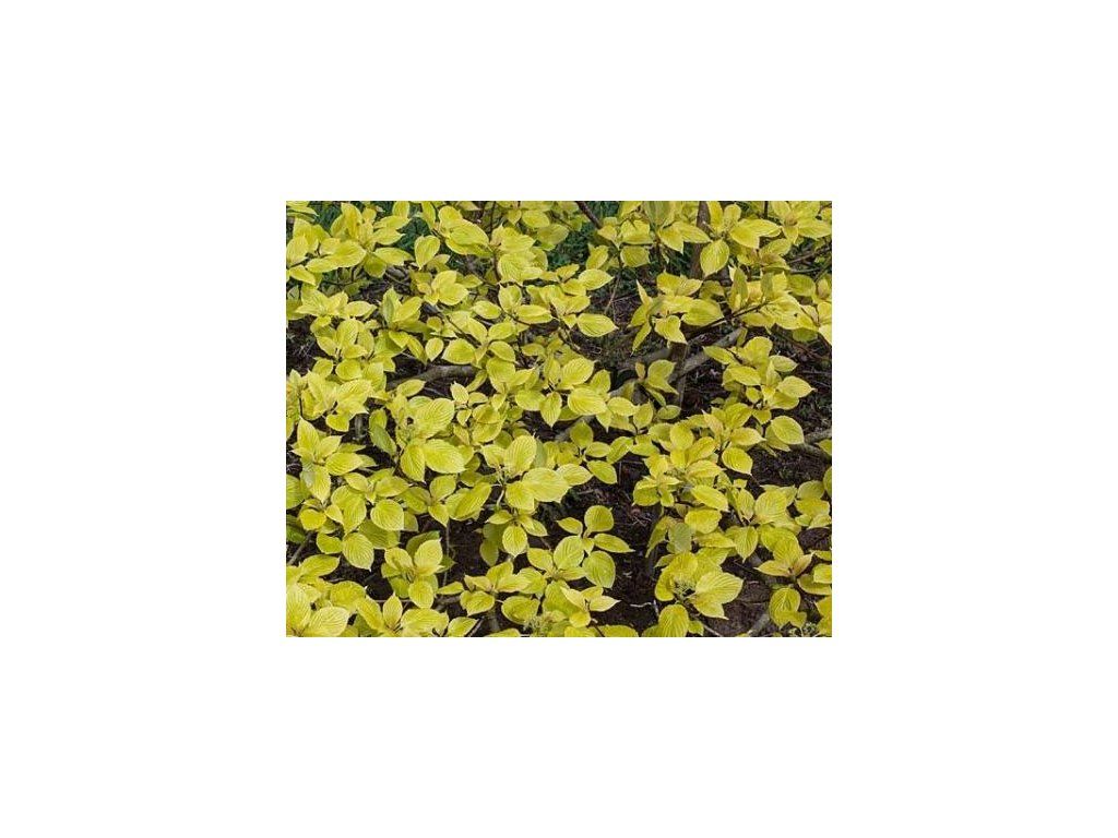 Hartriegel 'Candlelight' - seltene Sorte des Hartriegels mit fantastisch gefärbten Blättern. Diese sind goldgelb gefärbt, im Laufe des Jahres werden sie goldfarben, um im Herbst wieder dunkler zu werden. Er wächst bis zu einer Höhe von 8 m und einer Breite von 6 m. Er blüht weiß im Laufe des Juni. Das Wachstum ist stufig, es kann in buschiger, aber auch in Baumform gehalten werden.