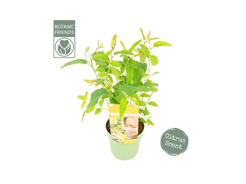Eukalyptus citriodora - ein immergrüner Baum aus Australien. Er erreicht Höhen von bis zu 20–40 Metern, aber beim Anbau in Töpfen ist sein Wachstum begrenzt und er kann in kleinerer Größe gehalten werden. Bei uns wird er hauptsächlich als Zimmerpflanze kultiviert. Diese Eukalyptusart wird für ihre schmalen, langen, hellgrünen bis graugrünen Blätter geschätzt, die beim Zerreiben einen intensiven Zitronenduft abgeben. Er blüht im Sommer mit kleinen, cremeweißen Blüten, die in Dolden angeordnet sind. Er ist frostempfindlich, daher ist es in kälteren Regionen ratsam, ihn als transportable Topfpflanze zu kultivieren, die im Winter ins Haus geholt werden kann. Er wird oft auch als Insektenrepellent verwendet. Er ist bekannt für seine wohltuenden Wirkungen auf die Atemwege, da er heilende aromatische Substanzen abgibt. Dank ihnen wirkt Eukalyptus antiseptisch, hat desinfizierende Eigenschaften und fördert die Heilung. Er behandelt Grippe und hilft bei Zahnschmerzen und Asthma.