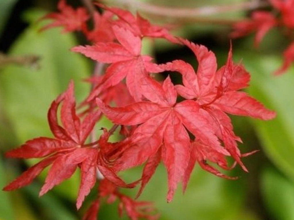 Japanischer Fächerahorn - die Grundart des Japanischen Fächerahorns, die wegen ihrer einzigartig geformten und intensiv gefärbten Blätter beliebt ist. Ihr Zauber zeigt sich bereits im Frühling und endet erst mit dem Laubfall. Unter unseren Bedingungen wächst der Fächerahorn langsamer, erreicht eine Höhe von 3–4 m, bei ähnlicher Breite und bildet so breit ausladende Sträucher oder niedrigere Bäume. Die Blätter sind der Hauptschmuck dieser Bäumchen oder Sträucher. Sie erscheinen in großer Zahl und sind typischerweise scharf eingeschnitten. Sie sind die ganze Saison über sehr attraktiv. Die Farben sind jedoch am vielfältigsten im Herbst, wenn sie sich in einer Mischung aus Gelb-, leuchtend orangefarbenen, purpurfarbenen und roten Tönen verfärben. Ein ausreichend heller Standort sorgt für die intensivsten Töne. Weltweit gibt es derzeit viele verschiedene Kultivare, die sich in Farbe, Wuchsform oder Blattform unterscheiden, aber eines ist sicher: Egal, welche Art wir wählen, er wird zweifellos zu einem beliebten und auffälligen Gartenelement.