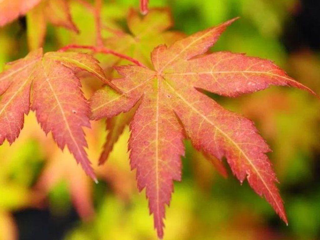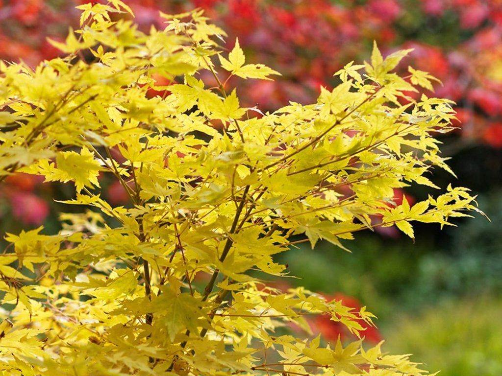 Japanischer Ahorn - Die Grundart des Japanischen Ahorns, die wegen ihrer einzigartig geformten und intensiv gefärbten Blätter gerne gepflanzt wird. Ihr Zauber zeigt sich bereits im Frühjahr und endet erst mit dem Laubfall. Unter unseren Bedingungen ist das Wachstum des Ahorns langsamer, er erreicht eine Höhe von 3–4 m bei ähnlicher Breite und bildet so breit ausladende Sträucher oder niedrigere Bäume. Die Blätter sind die Hauptzierde dieser Bäume oder Sträucher. Sie erscheinen in großer Zahl und sind typisch scharf eingeschnitten. Sie sind die ganze Saison über sehr attraktiv. Die Farben sind jedoch besonders im Herbst am vielfältigsten, wenn sie sich in einer Mischung aus Gelb, leuchtendem Orange, Purpur und Rottönen verfärben. Ein ausreichend heller Standort sorgt für die intensivsten Töne. Derzeit gibt es weltweit viele verschiedene Sorten, die sich in Farbe, Wuchs oder Blattform unterscheiden, aber eines ist sicher: Egal welche Art wir wählen, sie wird zweifellos zu einem beliebten und auffälligen Element des Gartens werden.