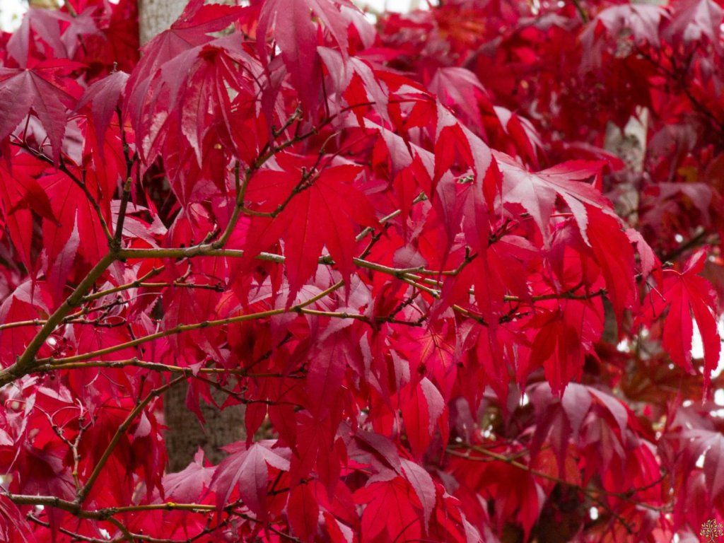 Japanischer Ahorn 'Fireglow' - eine niederländische Kultivarpflanze des Japanischen Ahorns, die im 20. Jahrhundert auf den Markt kam und für ihr gleichmäßiges dunkelrotes Laub im Sommer geschätzt wird. Er bildet einen aufrecht wachsenden Strauch bis zu einem kleinen Baum mit einer dichten, regelmäßigen Krone. Unter unseren Bedingungen erreicht er normalerweise eine Höhe von 3–4 m und eine Breite von 2–3 m. Die Blätter sind 5–7-lappig, tief eingeschnitten, im Frühling leuchtend rot, im Sommer gehen sie in ein dunkles Weinrot bis Purpur über und im Herbst nehmen sie eine intensive scharlachrote Färbung an. Die Blüten erscheinen im April bis Mai, haben einen purpurnen Farbton und nach dem Verblühen können geflügelte Nüsschen folgen. Der Zierwert liegt hauptsächlich in der farblichen Beständigkeit während der Vegetationsperiode und dem ausgeprägten Herbsteffekt. Die Kultivarpflanze wird als Solitär, in japanischen Kompositionen oder als kontrastierendes Element zwischen hellgrünen und panaschierten Gehölzen eingesetzt.
