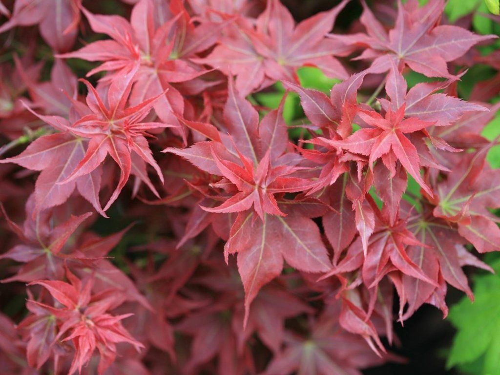 Japanischer Fächerahorn - die Grundart des Fächerahorns, der wegen seiner einzigartig geformten und intensiv gefärbten Blätter gerne gepflanzt wird. Ihr Zauber zeigt sich bereits im Frühling und endet erst mit dem Laubfall. Unter unseren Bedingungen wächst der Fächerahorn langsamer, erreicht eine Höhe von 3–4 m, bei ähnlicher Breite und bildet so breit ausladende Sträucher oder niedrigere Bäume. Die Blätter sind der Hauptschmuck dieser Bäumchen oder Sträucher. Sie erscheinen in großer Zahl und sind typischerweise scharf eingeschnitten. Sie sind die ganze Saison über sehr attraktiv. Die Farben sind jedoch am vielfältigsten im Herbst, wenn sie sich in einer Mischung aus Gelb-, leuchtend orangefarbenen, purpurfarbenen und roten Tönen verfärben. Ein ausreichend heller Standort sorgt für die intensivsten Töne. Weltweit gibt es derzeit viele verschiedene Kultivare, die sich in Farbe, Wuchsform oder Blattform unterscheiden, aber eines ist sicher: Egal, welche Art wir wählen, er wird zweifellos zu einem beliebten und auffälligen Gartenelement.