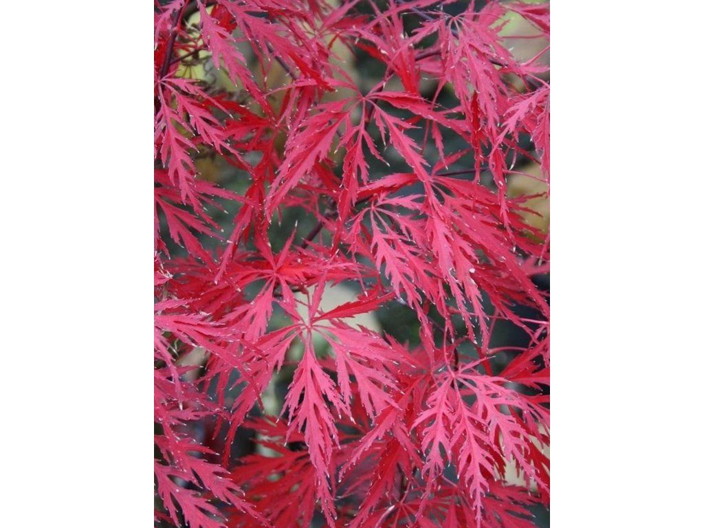 Japanischer Fächerahorn - die Grundart des Fächerahorns, der wegen seiner einzigartig geformten und intensiv gefärbten Blätter gerne gepflanzt wird. Ihr Zauber zeigt sich bereits im Frühling und endet erst mit dem Laubfall. Unter unseren Bedingungen wächst der Fächerahorn langsamer, erreicht eine Höhe von 3–4 m, bei ähnlicher Breite und bildet so breit ausladende Sträucher oder niedrigere Bäume. Die Blätter sind der Hauptschmuck dieser Bäumchen oder Sträucher. Sie erscheinen in großer Zahl und sind typischerweise scharf eingeschnitten. Sie sind die ganze Saison über sehr attraktiv. Die Farben sind jedoch am vielfältigsten im Herbst, wenn sie sich in einer Mischung aus Gelb-, leuchtend orangefarbenen, purpurfarbenen und roten Tönen verfärben. Ein ausreichend heller Standort sorgt für die intensivsten Töne. Weltweit gibt es derzeit viele verschiedene Kultivare, die sich in Farbe, Wuchsform oder Blattform unterscheiden, aber eines ist sicher: Egal, welche Art wir wählen, er wird zweifellos zu einem beliebten und auffälligen Gartenelement.
