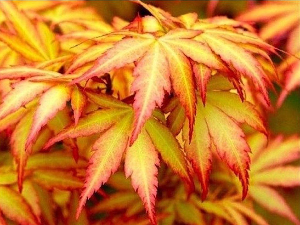 Japanischer Fächerahorn - die Grundart des Japanischen Fächerahorns, die wegen ihrer einzigartig geformten und intensiv gefärbten Blätter beliebt ist. Ihr Zauber zeigt sich bereits im Frühling und endet erst mit dem Laubfall. Unter unseren Bedingungen wächst der Fächerahorn langsamer, erreicht eine Höhe von 3–4 m, bei ähnlicher Breite und bildet so breit ausladende Sträucher oder niedrigere Bäume. Die Blätter sind der Hauptschmuck dieser Bäumchen oder Sträucher. Sie erscheinen in großer Zahl und sind typischerweise scharf eingeschnitten. Sie sind die ganze Saison über sehr attraktiv. Die Farben sind jedoch am vielfältigsten im Herbst, wenn sie sich in einer Mischung aus Gelb-, leuchtend orangefarbenen, purpurfarbenen und roten Tönen verfärben. Ein ausreichend heller Standort sorgt für die intensivsten Töne. Weltweit gibt es derzeit viele verschiedene Kultivare, die sich in Farbe, Wuchsform oder Blattform unterscheiden, aber eines ist sicher: Egal, welche Art wir wählen, er wird zweifellos zu einem beliebten und auffälligen Gartenelement.
