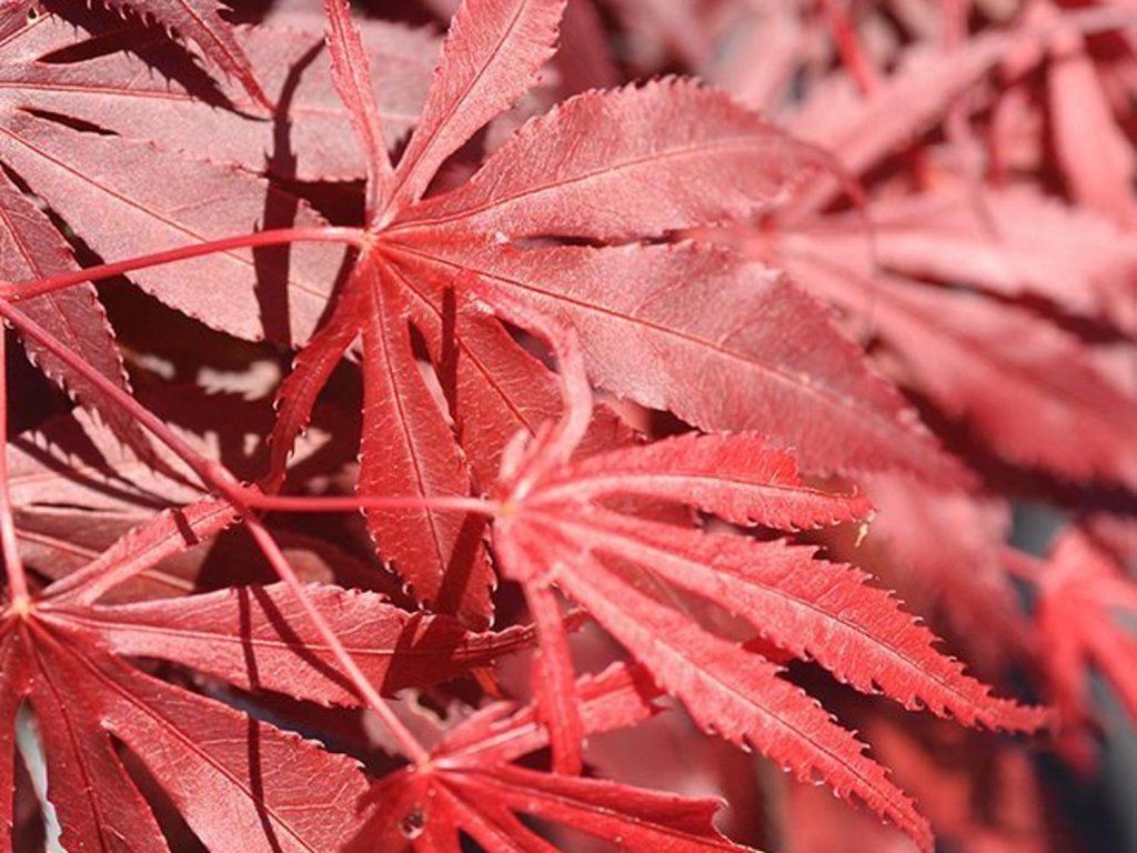 Japanischer Fächerahorn - die Grundart des Japanischen Fächerahorns, die wegen ihrer einzigartig geformten und intensiv gefärbten Blätter beliebt ist. Ihr Zauber zeigt sich bereits im Frühling und endet erst mit dem Laubfall. Unter unseren Bedingungen wächst der Fächerahorn langsamer, erreicht eine Höhe von 3–4 m, bei ähnlicher Breite und bildet so breit ausladende Sträucher oder niedrigere Bäume. Die Blätter sind der Hauptschmuck dieser Bäumchen oder Sträucher. Sie erscheinen in großer Zahl und sind typischerweise scharf eingeschnitten. Sie sind die ganze Saison über sehr attraktiv. Die Farben sind jedoch am vielfältigsten im Herbst, wenn sie sich in einer Mischung aus Gelb-, leuchtend orangefarbenen, purpurfarbenen und roten Tönen verfärben. Ein ausreichend heller Standort sorgt für die intensivsten Töne. Weltweit gibt es derzeit viele verschiedene Kultivare, die sich in Farbe, Wuchsform oder Blattform unterscheiden, aber eines ist sicher: Egal, welche Art wir wählen, er wird zweifellos zu einem beliebten und auffälligen Gartenelement.