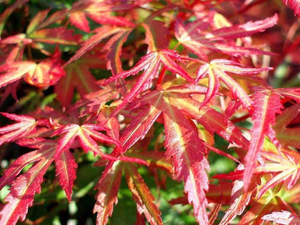 Japanischer Ahorn - die Grundart des Japanischen Ahorns, die wegen ihrer einzigartig geformten und intensiv gefärbten Blätter gerne gepflanzt wird. Ihr Zauber zeigt sich bereits im Frühling und endet erst mit dem Laubfall. Unter unseren Bedingungen wächst der Fächerahorn langsamer, erreicht eine Höhe von 3–4 m, bei ähnlicher Breite und bildet so breit ausladende Sträucher oder niedrigere Bäume. Die Blätter sind der Hauptschmuck dieser Bäumchen oder Sträucher. Sie erscheinen in großer Zahl und sind typischerweise scharf eingeschnitten. Sie sind die ganze Saison über sehr attraktiv. Die Farben sind jedoch am vielfältigsten im Herbst, wenn sie sich in einer Mischung aus Gelb-, leuchtend orangefarbenen, purpurfarbenen und roten Tönen verfärben. Ein ausreichend heller Standort sorgt für die intensivsten Töne. Weltweit gibt es derzeit viele verschiedene Kultivare, die sich in Farbe, Wuchsform oder Blattform unterscheiden, aber eines ist sicher: Egal, welche Art wir wählen, er wird zweifellos zu einem beliebten und auffälligen Gartenelement.