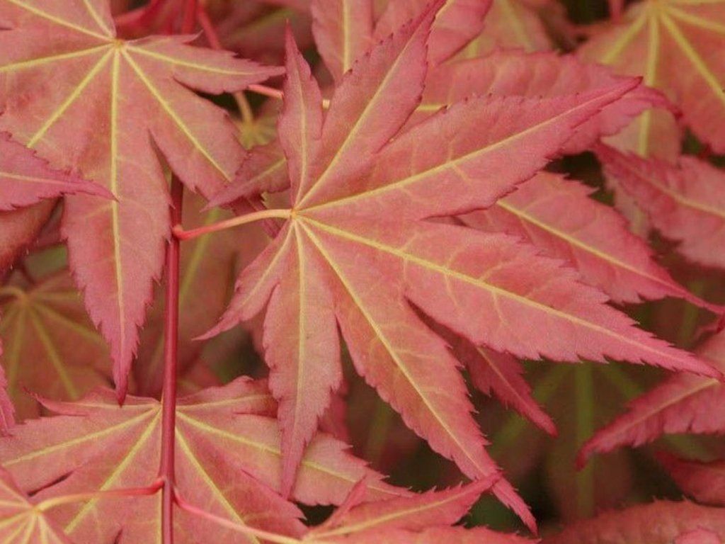 Japanischer Fächerahorn - die Grundart des Japanischen Fächerahorns, die wegen ihrer einzigartig geformten und intensiv gefärbten Blätter beliebt ist. Ihr Zauber zeigt sich bereits im Frühling und endet erst mit dem Laubfall. Unter unseren Bedingungen wächst der Fächerahorn langsamer, erreicht eine Höhe von 3–4 m, bei ähnlicher Breite und bildet so breit ausladende Sträucher oder niedrigere Bäume. Die Blätter sind der Hauptschmuck dieser Bäumchen oder Sträucher. Sie erscheinen in großer Zahl und sind typischerweise scharf eingeschnitten. Sie sind die ganze Saison über sehr attraktiv. Die Farben sind jedoch am vielfältigsten im Herbst, wenn sie sich in einer Mischung aus Gelb-, leuchtend orangefarbenen, purpurfarbenen und roten Tönen verfärben. Ein ausreichend heller Standort sorgt für die intensivsten Töne. Weltweit gibt es derzeit viele verschiedene Kultivare, die sich in Farbe, Wuchsform oder Blattform unterscheiden, aber eines ist sicher: Egal, welche Art wir wählen, er wird zweifellos zu einem beliebten und auffälligen Gartenelement.