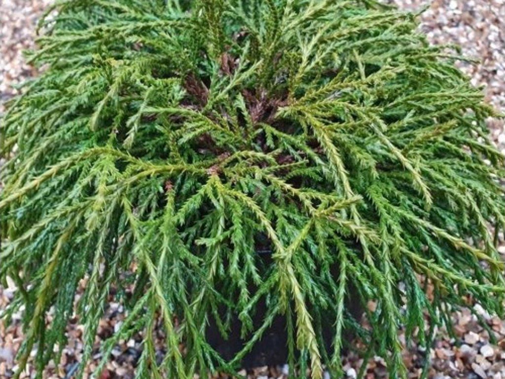 Scheinzypresse 'Filifera Nana' - Scheinzypressen haben sehr interessante Zweige, die auf den ersten Blick wie Schnüre aussehen. Die Sorte 'Filifera Nana' hat ein langsames Wachstum, ist kompakt geformt, leicht kegelförmig. Die Nadeln der Pflanze hängen herab. Sie haben eine frische grüne Farbe, die Äste ändern im Winter ihre Farbe zu braunen Tönen, was zusammen mit dem Nadelwerk sehr interessant aussieht. Benötigt keinen Schnitt. Er ist voll frostbeständig und erreicht eine Höhe von 1-2,5 m, je nach Kulturbedingungen. Ein echtes Unikat.
