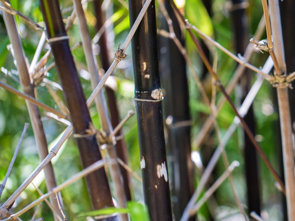 Fargesia nitida 'Black Dragon' - ein horstbildender, nicht-invasiver Bambus aus den Bergregionen Chinas, wo er in kühlerem und feuchterem Klima an Waldrändern wächst. Im Garten bildet er einen dichten, überwiegend aufrechten Horst mit leicht überhängenden Spitzen. Unter tschechischen Bedingungen erreicht er normalerweise eine Höhe von 2,5–3 m und eine Breite von 0,8–1,2 m. Die Endgröße wird je nach Feuchtigkeit und Nährstoffversorgung in etwa 5–10 Jahren erreicht. Ein Blickfang sind die dünnen, festen Halme: zuerst grün bis purpurfarben getönt, dunkeln sie im Licht allmählich zu braunschwarz bis schwarz nach und kontrastieren mit den tiefgrünen, schmalen Blättern. Die schwarze Färbung ist an einem sonnigeren Standort ausgeprägter, im Halbschatten bleibt der Ton eher dunkel olivgrün. Neue Halme erscheinen hauptsächlich von April bis Juni und verdichten allmählich den Horst. Das Laub ist fein, raschelnd, meist immergrün und bildet eine dornenlose Ganzjahreshecke. Im Frühjahr kann ein Teil der älteren Blätter natürlich ausgetauscht werden und der Horst hellt sich kurz auf, treibt aber schnell wieder aus. Die Sorte eignet sich als Solitärpflanze an der Terrasse, in einer Reihe als Hecke oder als Hintergrund für Stauden und Farne. Die Blüte ist bei Fargesien selten und unregelmäßig, daher werden sie hauptsächlich wegen ihrer Halme und Blätter angebaut.