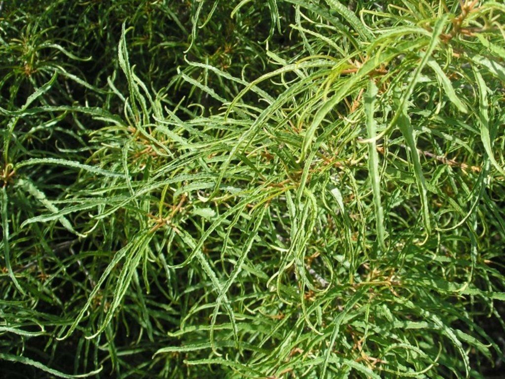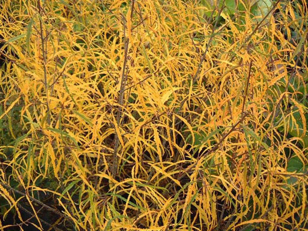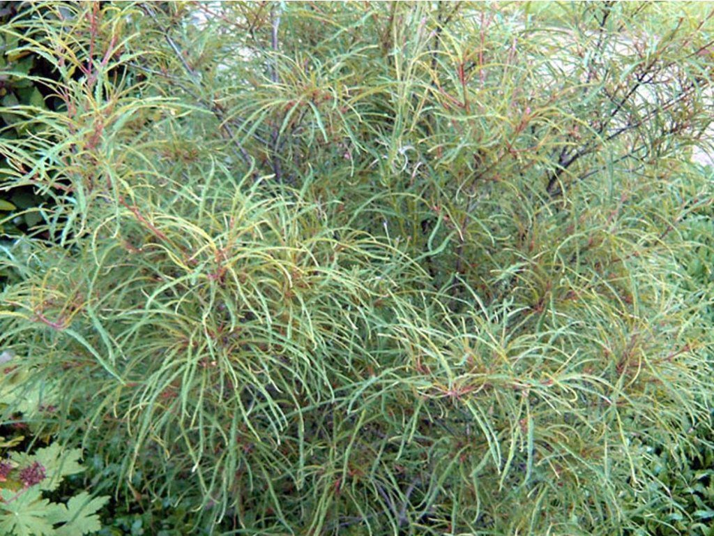 Faulbaum 'Aspleniifolia' - mittelgroßer, laubabwerfender Strauch, der eine Höhe von 1,5-2,5 m und eine Breite von 1-2 m erreicht. Die Blätter sind schmal, bis zu 10-12 cm lang, leicht gewellt, grün und vergilben im Herbst. Blüht im späten Frühling. Die Blüten duften zart und sind gelb-grün gefärbt. Sie werden durch schwarze Herbstfrüchte ersetzt. Es handelt sich um einen pflegeleichten Strauch mit feiner Textur.
