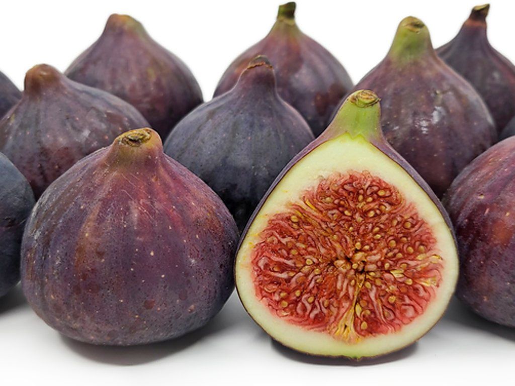 Feigenbaum 'Black Bursa' - eine alte Obstsorte aus Westasien und dem östlichen Mittelmeerraum. Die Sorte 'Black Bursa', auch bekannt als 'Bursa Siyahi', stammt aus der Provinz Bursa in Nordwesttürkei, wo sie seit Jahrhunderten angebaut wird und zu den traditionellen Tafelfigen-Exporten gehört. Der Baum oder Strauch bildet eine breite Krone und erreicht unter günstigen Bedingungen eine Höhe und Breite von etwa 3–5 m. Große Blätter sind tief gelappt, rau und spenden im Sommer dichten grünen Schatten. Die Früchte sind relativ groß, normalerweise 5–6 cm breit, birnenförmig mit einer festeren, dunkelvioletten bis schwarzen Schale. Das Fruchtfleisch hat eine tiefrosa bis rote Farbe und eine weiche, saftige Konsistenz. Der Geschmack ist ausgeprägt süß mit feinen Honig- und Fruchtnoten. Botanisch handelt es sich um einen Blütenstandstyp, der als Sykonium bezeichnet wird und in dessen Höhle sich kleine Blüten und Samen befinden. Die Früchte reifen allmählich von August bis Oktober, und die Ernte erfolgt mehrmals während der Saison. Sie werden hauptsächlich frisch verzehrt, aber auch für Desserts, Kuchen, Salate oder zur Herstellung von Marmeladen verwendet. Feigen enthalten Ballaststoffe, Kalium, Kalzium, die Vitamine A, B und C sowie weitere Mineralstoffe.