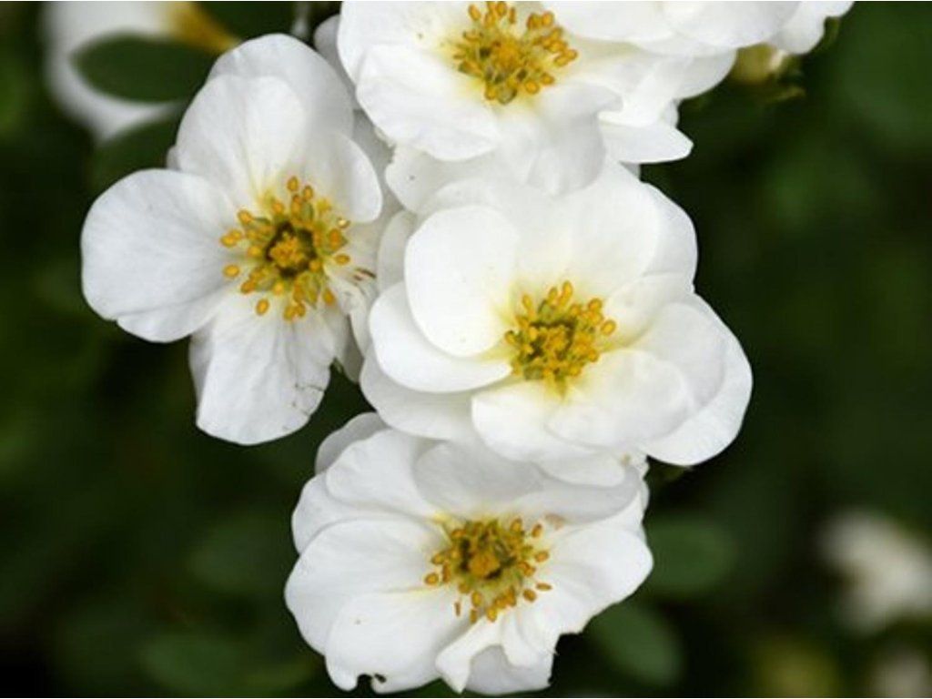 Potentilla fruticosa 'Creme Brulee' - ein kompakter Strauch, der für seinen dichten und kugelförmigen Wuchs und seine langanhaltende dekorative Wirkung während der Vegetationsperiode angebaut wird. Dieser laubabwerfende Strauch erreicht normalerweise eine Höhe von etwa 0,8 – 1 Meter und eine Breite von etwa 0,6 – 0,9 Metern, was ihn zu einem kleinen bis mittelgroßen Zierstrauch macht, der sich für die vorderen Bereiche von Beeten, für Wegränder, für niedrige Pflanzungen oder als Teil einer niedrigen Hecke eignet. Die Blätter sind dunkelgrün, fein geteilt und fallen im Herbst ab. Die Hauptzierde sind zahlreiche cremeweiße Blüten mit ausgeprägten gelben Staubgefäßen, die von Juni bis September oder bis zu den ersten Frösten blühen und deren Form und Farbe an kleine wilde Rosen erinnern. Aufgrund der langen Blütezeit zieht sie Bienen, Schmetterlinge und andere Bestäuber an und erhöht die Artenvielfalt des Gartens. Sie ist auch für Anfänger im Garten geeignet und findet Anwendung in Gruppenpflanzungen, in Staudenbeeten, auf Schutt- und Trockenbeeten oder als niedriges, blühendes Element entlang von Wegen und auf Terrassen.