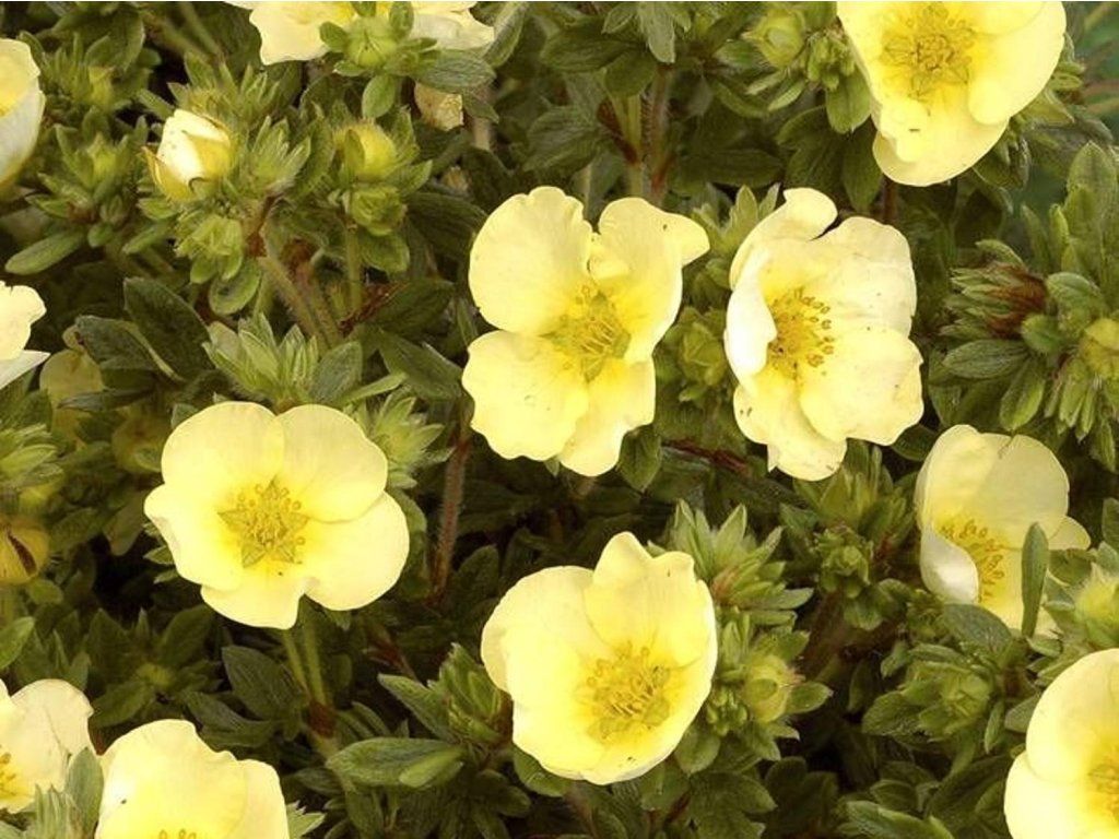 Potentilla fruticosa 'Primrose Beauty' - sehr widerstandsfähiger Zierstrauch, erreicht eine Höhe von ca. 60 - 80 cm bei ähnlicher Breite. Das Wachstum ist langsamer. Während der Saison hat er dunkelgrüne Blätter. Im Herbst nehmen sie leichte Gelbtöne an. Dies gilt jedoch nicht für junge Blätter. Am Strauch blühen ab Mai hellgelbe, fünfzählige Blüten von schalenförmiger Gestalt. Ihre Blütezeit ist wahrscheinlich die längste aller blühenden Sträucher, da sie bis zum späten Herbst blühen, nach den ersten Frösten im Oktober. Schön auf dem Felsen, in verschiedenen Behältern, aber auch als Solitär. Eignet sich auch als Bodendecker oder als Unterpflanzung unter höheren Bäumen und Sträuchern.