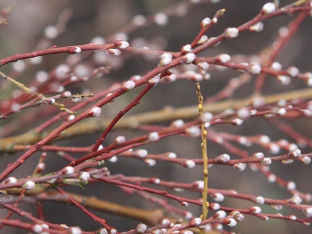 Salix Finmarchova - eine dekorative Zwergform der Weide, die eine Höhe von 20 - 30 cm erreicht und einen dicht verzweigten Strauch mit bogenförmig überhängenden, dünnen Zweigen bildet. Früh im Frühling, d.h. im März bis April, je nach Wetterlage, trägt sie schöne Blüten in Form von silbrigen Kätzchen. Damit sind die rotbraunen Zweige dicht bedeckt. Die Blätter treiben kurz nach der Blüte aus und sind klein, dunkelgrün mit einem grauen Schimmer. Sie kommt in kleinen Gärten als Solitärpflanze zur Geltung und ist ideal für die Kübelkultur.