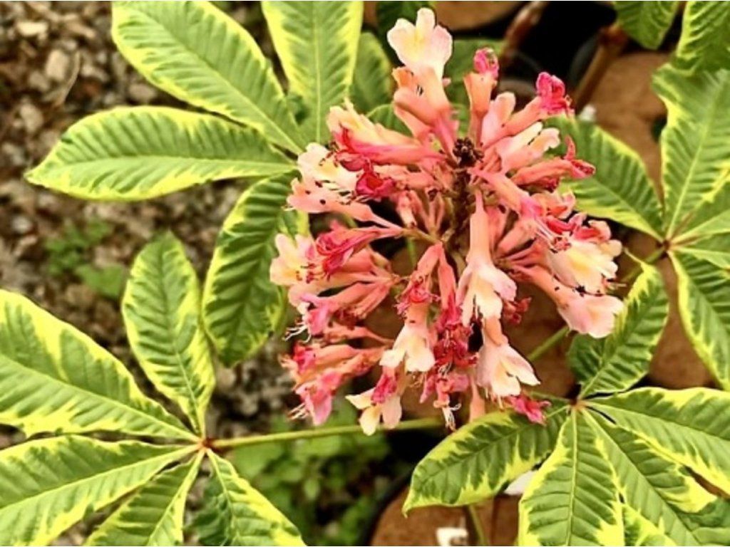 Rosskastanie 'Marginata' - langsam wachsende Art mit einer kugelförmigen Krone, die eine Höhe von 10-15 m erreicht. Beeindruckt mit attraktiv gefärbten grünen Blättern mit einer ausgeprägten gelben Umrandung entlang der gesamten Länge. Blüht Anfang Juni, die Blüten haben eine rote bis rot-rosa Farbe, sind ziemlich groß und aufrecht. Gut frostbeständig und krankheitsresistent. Geeignet für größere Gärten oder Parkanlagen.