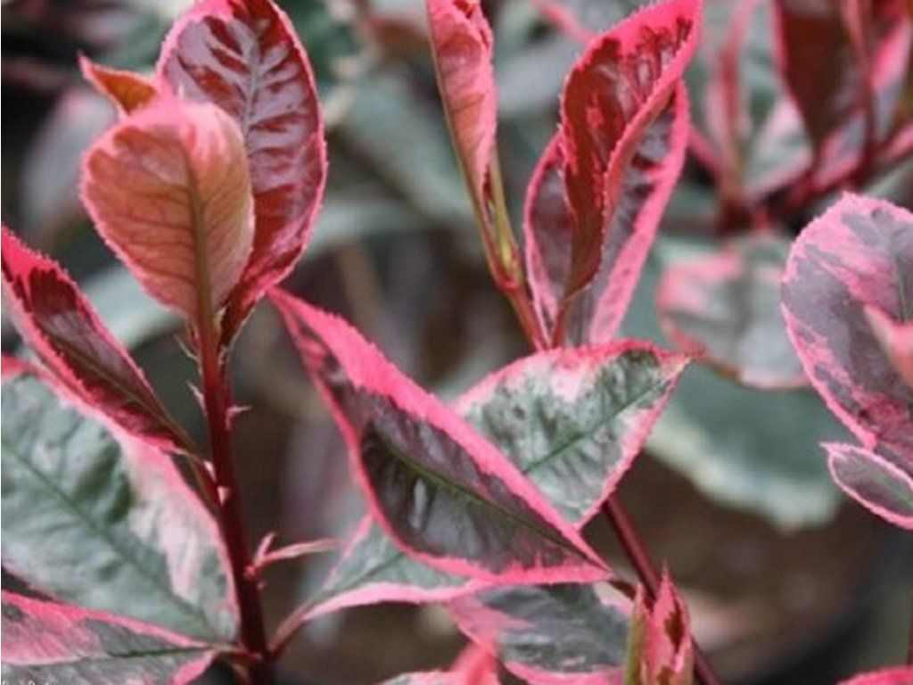 Photinia x fraseri 'Louise' - Entstanden aus der Kreuzung von Photinia glabra und Photinia serratifolia, wird sie in Gärten wegen ihrer immergrünen Blätter und ihrer guten Verdichtungseigenschaften geschätzt. Die Sorte 'Louise' ist eine panaschierte Auslese mit Sortenschutz, die unter der Bezeichnung 'Mclarlou' geführt wird und von der Züchterin Louise McWhinnie stammt. Sie bildet einen aufrechten Strauch bis kleinen Baum mit leicht ledrigen, elliptischen Blättern. Junge Triebe treiben rot bis olivgrün mit einem hellrosa Rand aus und werden im Laufe der Saison dunkelgrün mit cremeweißer Marmorierung. An warmen Sommertagen erscheinen zwei bis drei Wellen neuer Triebe, sodass sich die Farbgebung im Laufe des Jahres verändert. Ohne Schnitt erreicht sie unter tschechischen Bedingungen normalerweise eine Höhe von etwa 2–3 m und eine Breite von 1,5–2,5 m, in einer Hecke bleibt sie durch Schnitt deutlich kompakter. Anfang Mai und Juni trägt sie aufrechte, schirmrispenartige Blütenstände aus kleinen weißen Blüten, die von Insekten angeflogen werden. In der Komposition wirkt sie als heller Akzent zwischen dunkelgrünen Nadelbäumen, neben Kirschlorbeer oder Eiben, oder in modernen Arrangements mit Ziergräsern.